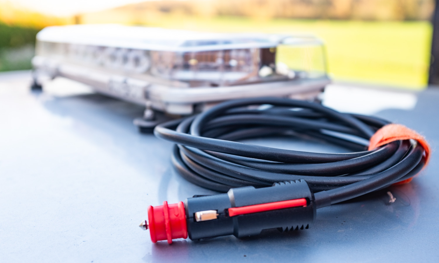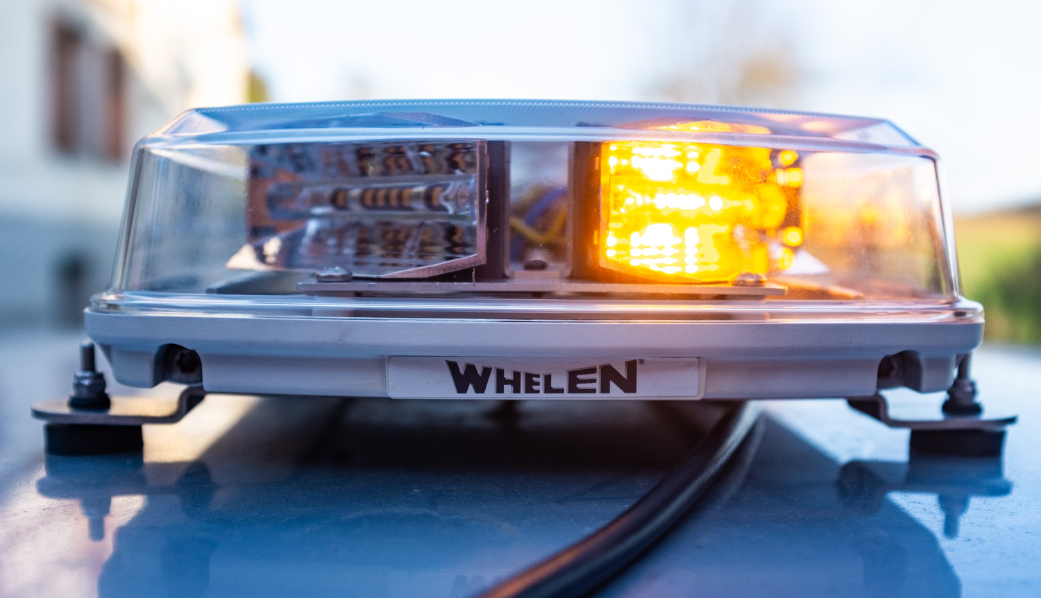 Das ist einer meiner Whelen Century Series Mini Lightbars in der R65 Version mit e11 Zulassung. Die Balken werden in der EU von Woodway vertrieben und entsprechend gelabelt.