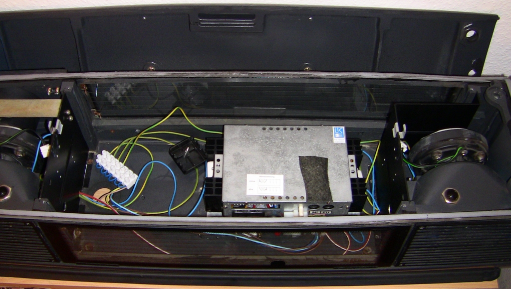 ich habe mich nun doch entschlossen den Verstärker nicht in den balken zu setzen. Ich habe den Verstärker nun wieder rausgelagert und die Verkabelung neu gemacht mit Stecker und allem drum und dran.