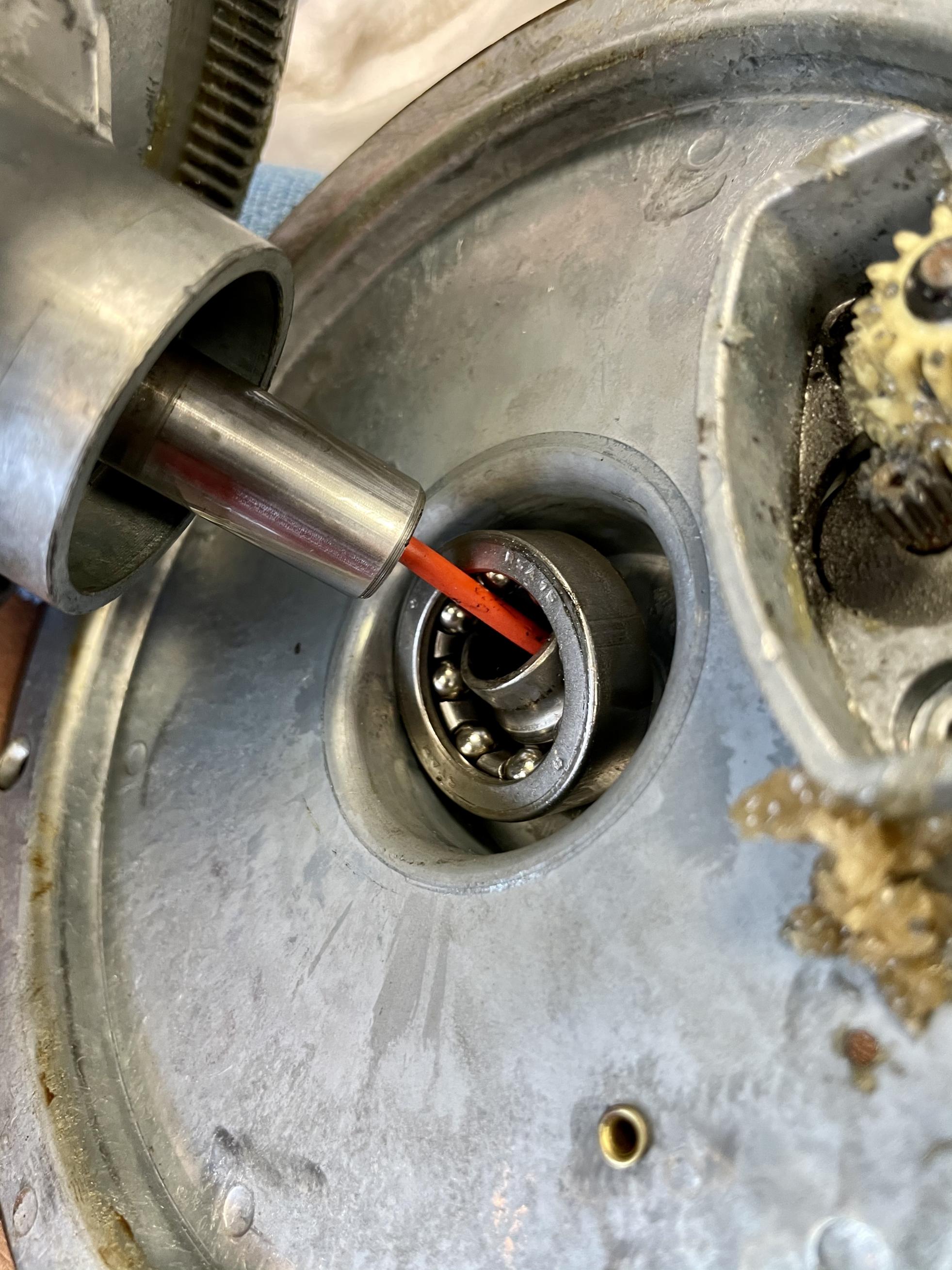 2. Den wackeligen Reflektor und Motor in der Blauen wieder fest gemacht, dabei erstaunliche Dinge entdeckt: scheint aus dem Schiffsbau zu kommen, die KL 1 Alles massiv, irrsinnige Kugellagerungen für die Welle, innenverzahnter Drehteller aus Guss Meine Güte, hier ist alles für die Ewigkeit gebaut.