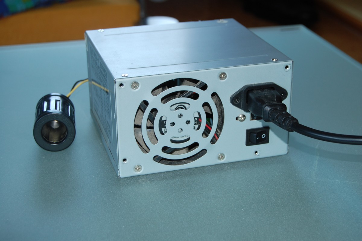 ![]() Als erstes: Mein Marke-Eigenbau-Netzteil Das 12V-Netzteil haben wir in der Schule mit unserem Elektrotechnik einfach aus einem alten PC-Netzteil gebaut. Alles an Kabeln abgeschnitten, was nicht 12V ist, an die Niedrig-Volt-Leitung (weiß ich jetzt gar nicht wie hoch da die Spannung ist) eine kleine Glühlampe dran, damit ein Verbraucher da ist, und zum Schluss noch eine Zigarettenanzünderdose angelötet. Einfach, billig, und funktioniert einwandfrei. |