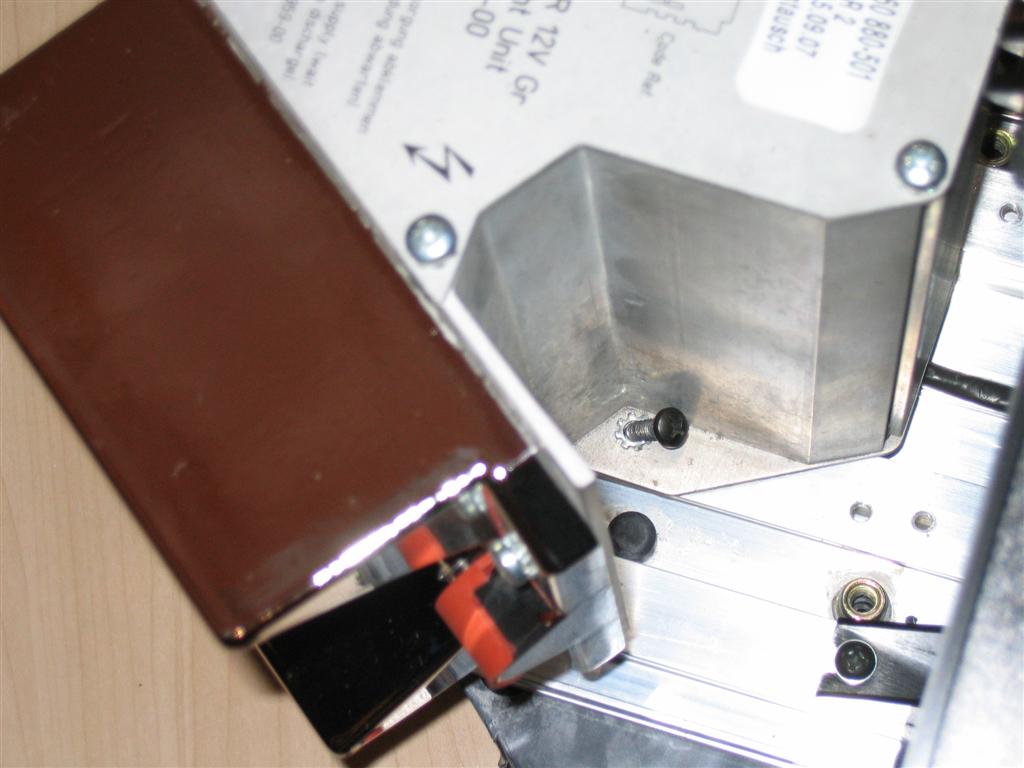 Zum Schluß vorsichtig mit dem Schraubenzieher und einer Taschenlampe die jeweilige Schraube ins Loch schubsen und festziehen.