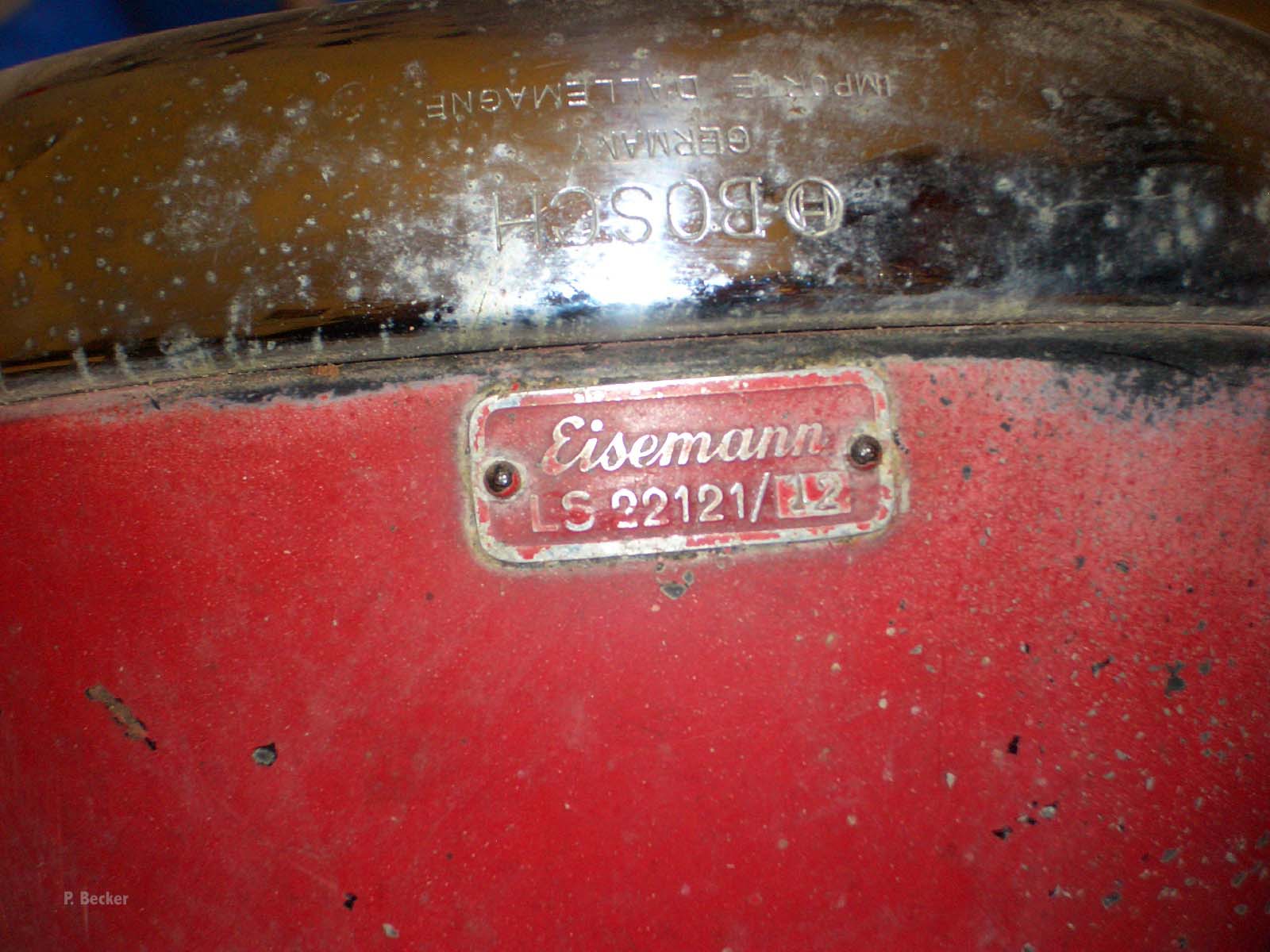 Ich vermute, für die damaligen Kennleuchten für blaues Licht hat auch EISEMANN aus Kostengründen handelsübliche Scheinwerfergehäuse und Lampenfassungen verwendet. Das "Geheimnis" liegt in der besonderen Kontaktierung der Lampenwendel mit zwei Stirnkontakten am Lampensockel, siehe dazu meine nahezu baugleiche HELLA-Kennleuchte 130/95 Ri.