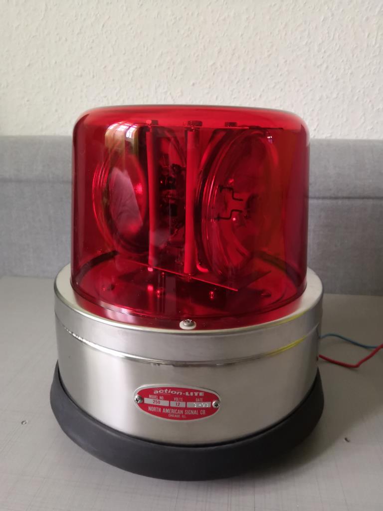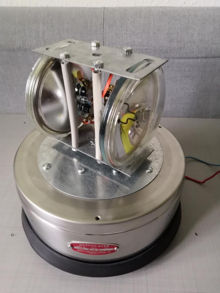 Zuerst das positive: es dreht Ansonsten ist das Teil aber eine Ruine. Hersteller: North American Signal Company, Wheeling IL, USA Model: 250/ action Lite Spannung: 12 Volt Das Prinzip ist bekannt und bedarf keiner großen Erklärung. 2 sealed beam vom Typ 4416 sind in einem Metallgehäuse gelagert und werden über einen Motor in Rotation versetzt. Die Haube und auch die skirt Dichtung ist hinüber. Ebenso fehlen die sealed beams und eine Schraube des Chromrings, der die Haube fixiert.Auch das Metall im Inneren ist angegriffen. Dazu habe ich noch keinen Plan, wie ich das mit möglichst geringem Aufwand wieder hübsch mache. |