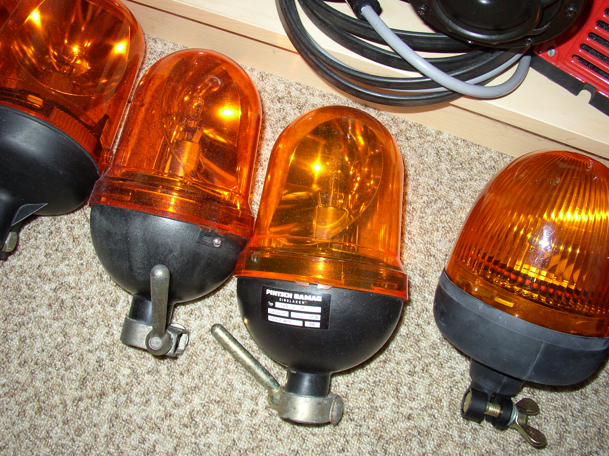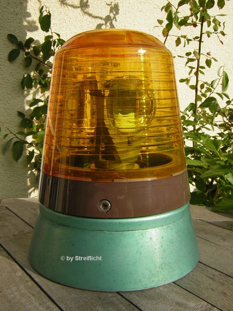 ich werde hier mal so nach und nach meine Sammlung vorstellen. Wann immer ich Zeit übrig habe, und/oder z. B. eine Leuchte fertig wird, kommt wieder was dazu. Rundum-Gruss Michi Ich mache mal den Anfang mit einer meiner Oldies: Eisemann RKLE 130 12V mit Blechsockel und Alumotor Um die Leuchte so authentisch wie möglich zu halten, habe ich in diesem Fall beschlossen den alten Lack einfach so zu lassen wie er ist. Den Rest der Leuchte habe ich natürlich "generalüberholt", was bei mir bedeutet: Leuchte nebst Innenleben bis auf die letzte Schraube zerlegen, reinigen, ggf. reparieren, schmieren, einstellen und wieder montieren. Damit fing alles an... Meine allererste Rundumleuchte: Eine RKLE 90 mit Scheibenwischermotor und 6V Betriebsspannung. Ich habe sie als kleiner Knirps geschenkt bekommen . Sie hat viele Jahre, wenn nicht gar Jahrzehnte, auf einer Startseilwinde für Segelflugzeuge treu ihren Dienst verrichtet, bis sie von einer RKLE 110 abgelöst wurde. Weiter geht´s mit einer RKLE 130 12V Alumotor: Eine RKLE 130 24V mit Zahnradantrieb, diente mal der Landesverteidigung... ... aber, bei soviel Krach wie das Ding vor dem Gang in meine Werkstatt gemacht hat, wäre das mit dem Verteidigen sowieso nicht lange gut gegangen... -> Der Achsabstand des Motors paßte nicht. Ebenfalls gleicher Herkunft entstammt... Die RKLE 90 24V mit Zahnradantrieb Natürlich, ganz BW-like, mit Gegengewicht am Reflektorträger. Hier die zivile Version der RKLE 90 12V mit Alumotor in der alten Ausführung mit Chromring Nach gelb kommt jetzt wieder blau :Eine RKLE 130 12 V mit Scheibenwischermotor Leider fehlt ihr der originale Blechsockel, und bevor sie jetzt ohne Rock dasteht habe ich ihr kurzum einen aus Guss "geliehen". Vielleicht findet sich ja mit der Zeit ein standesgemäßes Unterteil... Eine Sonderform der RKLE 90 ist die RKA 1 12 V mit Zahnradantrieb sie wurde von Bosch extra für BMW gefertigt um Fahrzeuge der Staatsregierung auszurüsten. Hier gab es absolut nichts zu restaurieren: Eine RKLE 90 6V mit Alumotor Diese Leuchte habe ich genau so bekommen, wie sie hier steht. Ihr Zustand ist praktisch "out of the box" und ungebraucht. Ein kleines aber wichtiges Detail konnte ich (dank eines netten Sammlerkollegen aus dem Forum) heute noch hinzufügen. Somit kann ich sie Euch nun guten Gewissens präsentieren. Gegensätze ziehen sich bekanntlich an, also mal was modernes: Eine Bosch RKLE 200 B2 24 V mit Hybridantrieb Der Begriff "Hybrid" beschreibt hier eine besondere Formgebung der Zahnradzähne dieses Antriebes. Konstruktiv ist er ähnlich zum sog. "Zahnradantrieb" wie ihn z. B. die alten Bundeswehrleuchten haben. Bemerkenswert ist das Gegengewicht an der Rückseite des Reflektors. Bei dieser Leuchte wurde sehr viel Kunststoff verbaut. Das macht sie sehr leicht bei wirklich imposantem Volumen. Wir schalten rüber zur Konkurrenz... Tatsächlich ein Wunsch meiner besten Frau der Welt. Der war mir natürlich Befehl und kurze Zeit danach war sie da! ... ![]() ... Die Hella KLJ 80 12V mit Riemenantrieb Wir blättern im Kalender ein paar Jahre zurück... Eine KLJ 80 12 V noch mit Flächenspiegel und Zahnradantrieb Dürfte der Technik nach so vom Anfang der 70er Jahre sein. Tut wie ein alter Hanomag mit Getriebeschaden im Rückwärtsgang. ![]() -> Muss ich mal ´n neues Lager rein bauen. Wir gehen in der Zeitrechnung nochmal zwei Jahrzehnte zurück und finden eine meiner ältesten Leuchten: Eine KL7 6 V von 1959 Charakteristisch für diese erste Serie ist der eckige Motor, sowie ein auf dem Kopf stehendes, eingeprägtes Hella Signet auf dem Chromring. Vermutlich wurden die Chromringe für diese erste Serie einfach aus der normalen Rückleuchtenringproduktion herausgenommen, was den Kopfstand des Hella Signet plausibel erklären würde. Leider kriege ich kein besseres Foto hin... Wir wechseln wieder die Farbe: Eine KLJ 60 12V mit Riemenantrieb Läuft auf 12 V zwar etwas gemächlich, 24 V hat sie aber definitiv nicht... -> Ich komm der Ursache schon noch auf die Spur! Sie darf natürlich auf keinen Fall fehlen... Soeben fertig restauriert: Die KL6 12 V mit Alumotor Und weil sie zu meinen Favorites zählt, bekommt sie in Kürze eine Leucht-Kameradin. Die zweite KL6 wartet schon in der Werkstatt. Und hier ist sie schon, fertig restauriert: Die zweite KL6 in 6V mit dem bewährten Alumotor Eine KLJ 70 12 V mit Riemenantrieb Augenmerk wäre auf die wahrlich nostalgische H1-Birne mit dem Kontaktsteg zu legen. Ich hoffe, der Glühfaden hält noch lange durch. Die folgenden Pintsch-Bamag Leuchten haben mit ihren leuchtturmähnlichen Dreilinsenoptiken zweifelsfrei etwas ganz Besonderes an sich. Hier Eine RSW 24 G 24V mit Alumotor Diese Leuchte bot vorwiegend in Norddeutschland als Kennleuchte auf den markanten, alten, grünen Notrufsäulen ein bekanntes Bild. Leider wurden fast alle dieser Notrufsäulen schon vor vielen Jahren demontiert. Ich bin froh noch eine dieser Leuchten ergattert zu haben. Ich möchte gar nicht wissen, wieviele dieser schönen Leuchten damals im Schrottcontainer gelandet sind... Eine weitere Variante dieser Leuchte ist Die RSW 220 R (hier in Rot!) Eigentlich eine RSW 24 R mit eingebautem Trafo um den Betrieb an 220 V zu ermöglichen. Dieses seltene Exemplar habe ich gerade noch rechtzeitig aus einer Disco "gerettet" und wieder in den Urzustand versetzt.Zum Glück konnte ich mit etwas Geschick noch die Original-Farben aller Bauteile herausfinden. Bemerkenswert an beiden Leuchten dieser Baureihe ist der massive Linsenkorb aus Aluguss. Auch Drehspiegelleuchten kommen aus dem Hause Pintsch-Bamag. Hier Eine KRNW 220 G mit Getriebemotor-Riemenantrieb Als Vertreterin der Bauform B1 hier Eine PKN 12 G mit Riemenantrieb Oder in der Aufsteck-Version als Eine PKN 12 GA mit Riemenantrieb Das wellige Typenschild gefällt mir nicht, ist aber so von Werk aus drauf. Die kugelförmige Gehäuseform läßt eigentlich kein planes Klebeschild zu. Es geht Richtung Osten: Rustikale und stabile Leuchten kamen viele Jahr