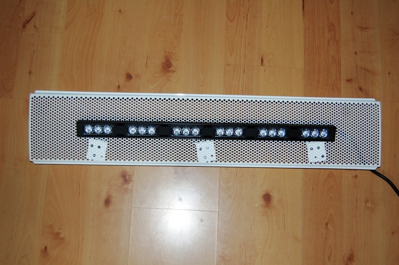 So, Heckwarnanlage und Gitter sind vereint. Jetzt werden noch die Schrauben weiß lackiert und dann wird es in die RTK gebastelt und das Kabel gezogen.