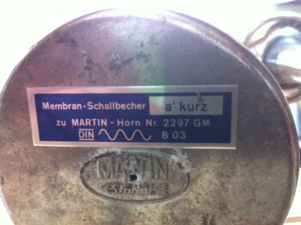 Ohne Hörner laufen lassen ist ok, aber das mit dem Nähmaschinenöl hört sich für mich nicht so gut an. Aber warten wir mal ab was unsere Spezialist sagt ist besser für alle Beteiligten. Ich glaube es ist ein großes wenn nicht sogar das größte Geheimnis welches Öl die Firma Martin verwendet . Achso morgen Früh enden die Betriebsferien bei Martin, dann kann man da auch mal anrufen um zu fragen was das Stimmen der Hörner kosten wird ich denke das die Hörner auch neue Membranen nötig haben.