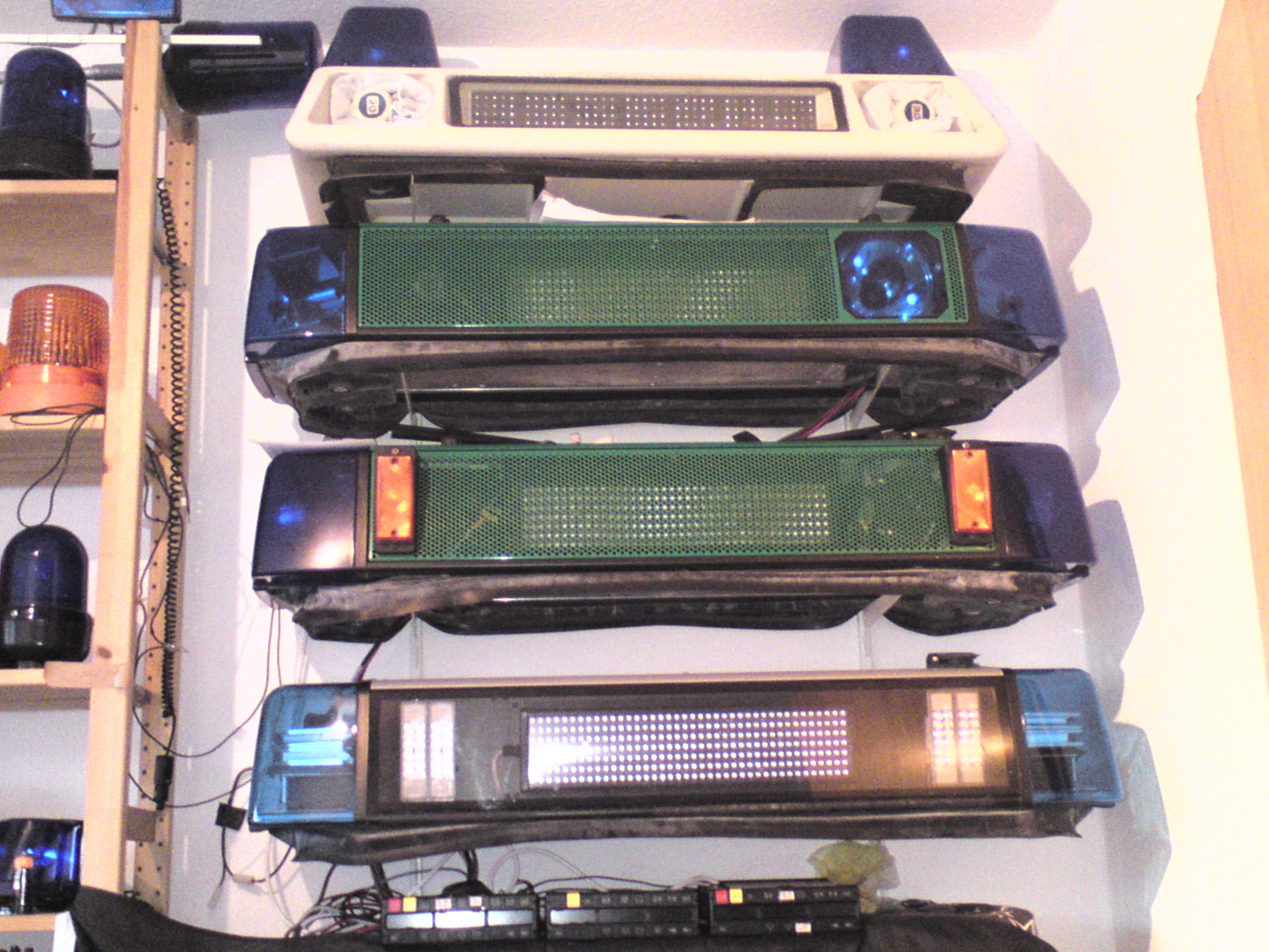 ![]() Bis auf leichte Lackschäden an der Grundplatte vorne und leichten Nutzungs-Erscheinungen an den Lichthauben und der Blende vorne - tip-top! Innen etwas Staub, aber das gehört dazu. Nachblinken der roten WL-LED habe ich nicht bemerken können. Nur die Doppelblitz syncron haben mich etwas gestört - alternierend finde ich auffälliger und besser. Feststellung am Rande: Wenn man das LED-Modul neben dem BSF auf 6 stellt blitzen BSF und Blaulicht links syncron, stellt man dagegen das rechte Modul auf 6 und das linke auf 2 blitzt der BSF alternierend zum linken Blaulicht. Hier seht ihr sie im Kreise ihrer Lieben.