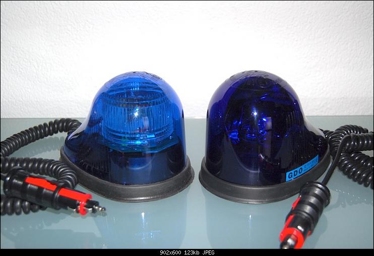 Von der Bauform her identisch mit der GDO Halogen, nur in dieser Leuchte sitzt eine Doppelblitzelektronik und die Lichthaube ist entsprechend in einem helleren blau gehalten.