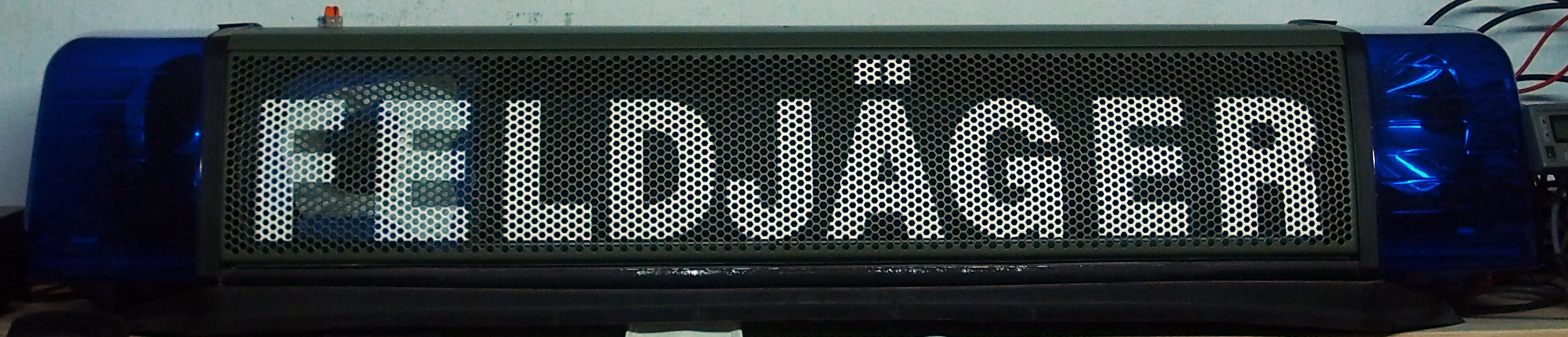 Der Balken stammt ursprünglich von der sächsischen Polizei und war mit ASW, und LED Anhalteblitz sowie ASG in Glühlampentechnik vorn und hinten ausgestattet. Ich habe diese Teile demontiert und die ZSE gegen eine Version getauscht die in der Lage ist LED Matrix zu steuern. Weiterhin wurden die Blenden sandgestrahlt und im entsprechenden Farbton neu lackiert. Spannend wäre zu wissen wie die Bundeswehr zu dieser individuellen Lösung gekommen ist, eine Nachfrage bei Hella hat nämlich ergeben das diese zu keinem Zeitpunkt Balken mit ASG an die Bundeswehr ausgeliefert haben. Diese Version mit Xenonblitztechnik wurde auf dem Mercedes G-Model (umgangssprachlich "Wolf") der Bundeswehr genutzt. Genauer gesagt auf der Version mit der Zussatzbezeichnung SSA. Mein Balken weist, wie auch das Original der Bundeswehr einen ASG von und hinten auf. Welcher ASG im Original verbaut war lässt sich nicht mehr genau rekonstruieren. Laut Auskunft Kommando der Feldjäger konnte er lediglich "Halt Feldjäger u. Stop MP" anzeigen. Ich hab mich für einen modifizierten ASG in LED Matrix Technik entschieden. Die Textkombinationen sind aufeinander abgestimmt. Die ersten drei Texte werden vorn in Spiegelschrift und hinten in real Schrift angezeigt. Text vier und fünf lauten entsprechend zur vorderen Anzeige "Bitte folgen" und "Follow Me" Bei den restlichen Texten sind vorn und hinten identisch. Besonderer dank geht bei diesen Balken an "Techniker" der für den Umbau und die Programmierung der Matrix sowie der BE zeichnet. Der Kabelbaum stammt wie auch beim DBS von Diemelbecker. Lob ? Kritik ? Anregung? immer raus damit. Fotos. |