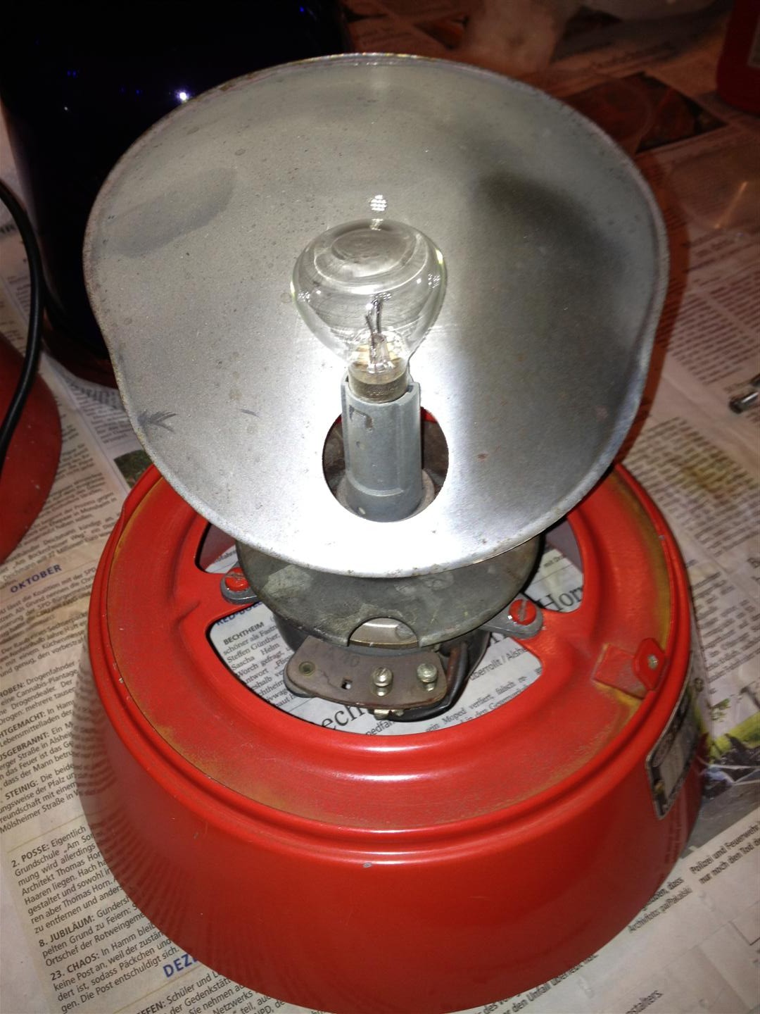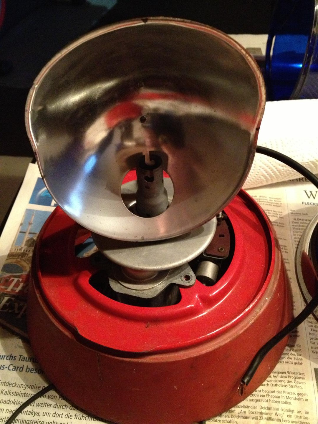 da ich gerade mein Strohwitwertum nutze, ein paar liegengebliebene Schätze herzurichten, sind zwei Fragen zur KL 8 aufgetaucht: Mit welcher Schraube wird der Chromring befestigt? Ich habe bei meinen beiden Leuchten keine dazu bekommen und im Netz findet sich nahezu an jeder Leuchte eine andere Schraube... Gibt es verschiedene Innenleben? Konkret habe ich zwei 12 V Innenleben. Beide haben den gleichen Motor und Spiegel. Es unterscheiden sich jedoch die Platten, auf denen die Spiegel sitzen und die Sockel für die Leuchtmittel. Danke und zwischenjährliche Grüße Alexander Bilder: Innenleben 1 ohne Kondensator unter den Anschlüssen: Innenleben 2 mit Kondensator unter den Anschlüssen: |