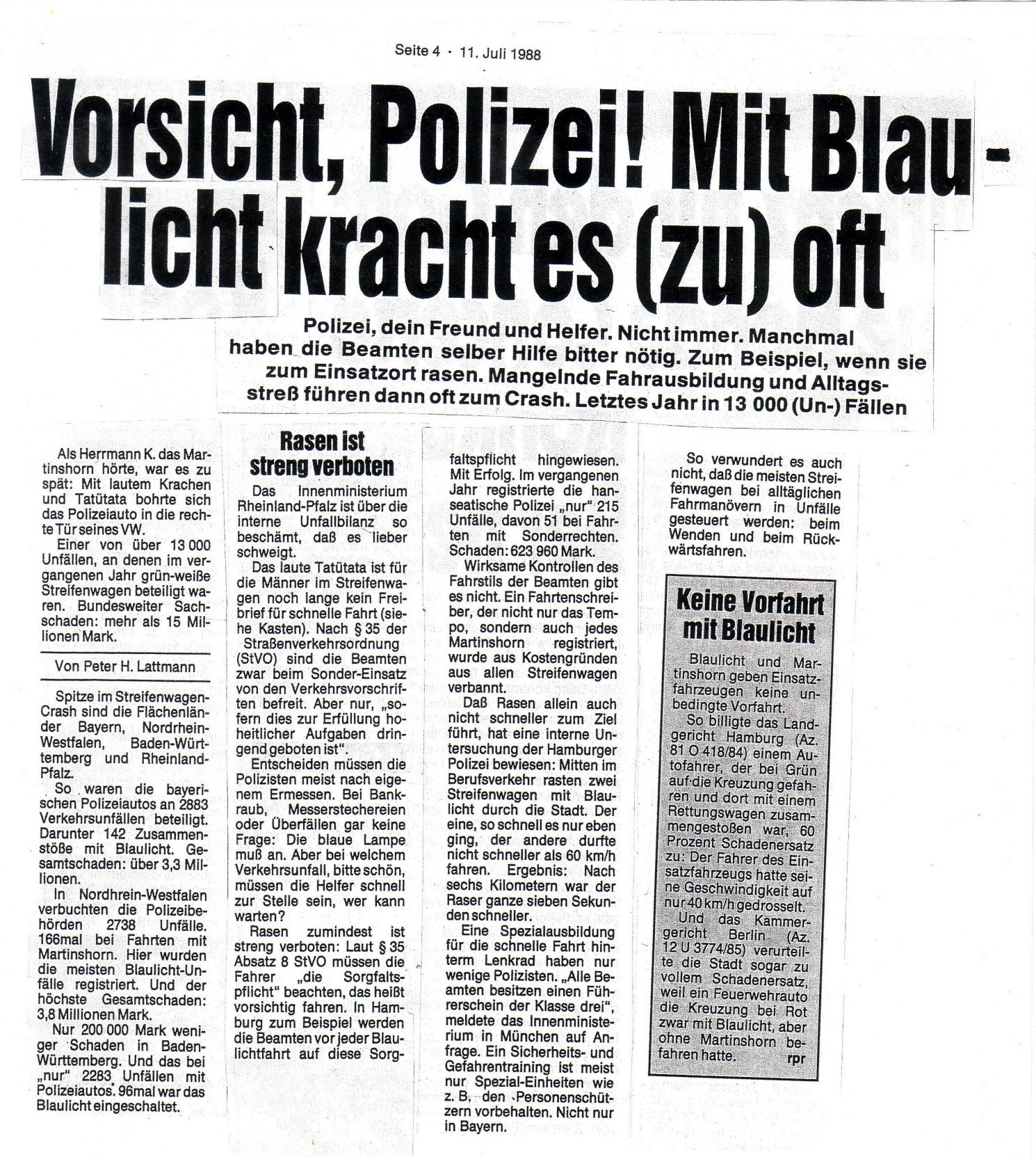 Besonders interessant finde ich die Tatsache, dass Beamten in HH vor jeder Einsatzfahrt auf ihre Sorgfaltspflicht hingewiesen wurden. Ob das heute auch noch so ist?