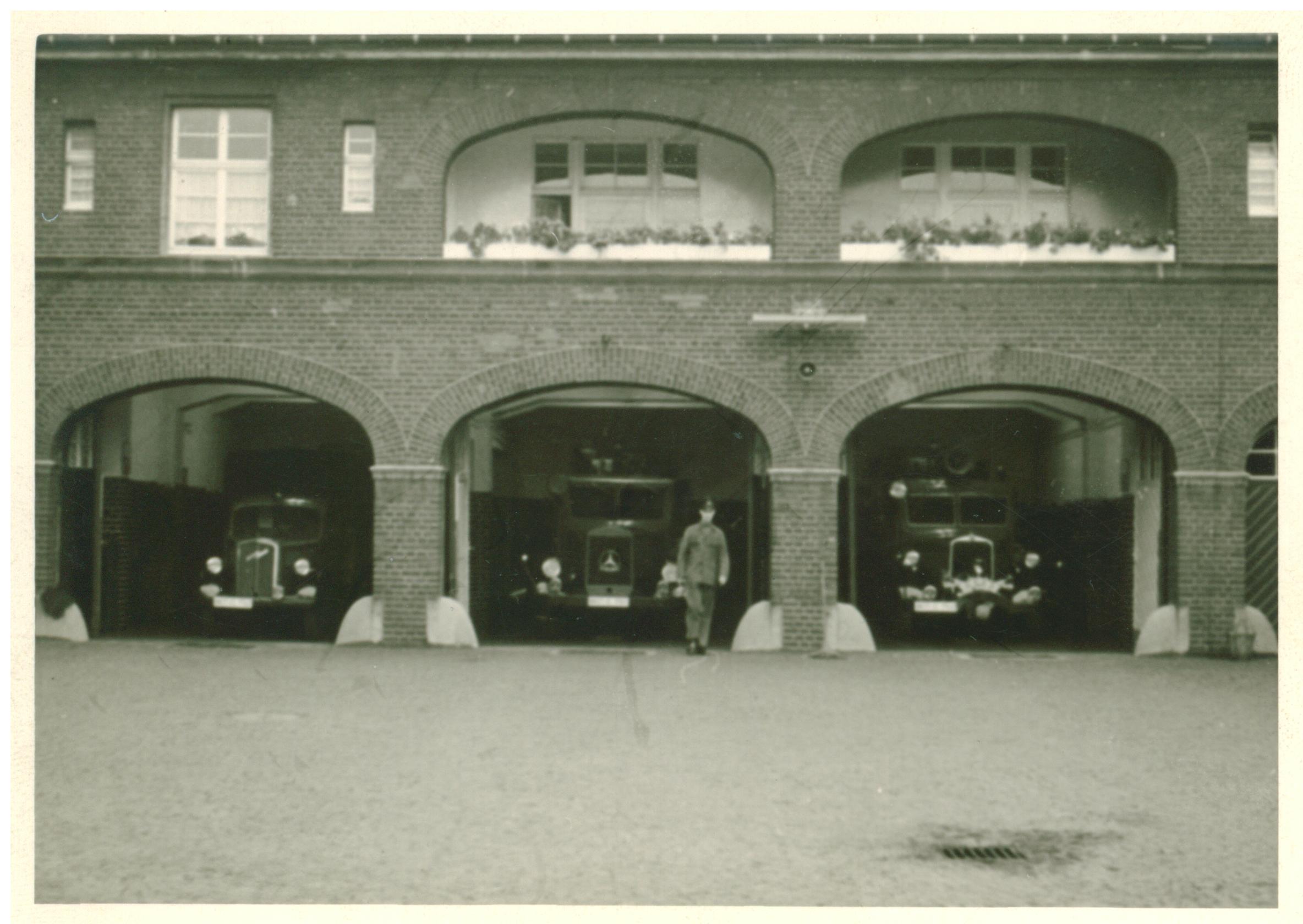 Deine Bilder stammen so aus der Mitte der 1950er Jahren. Die gezeigten Fahrzeuge sind einmal ein LF 15 (Vorbaupumpe) und ein LF 25. Die Fahrzeuge scheinen wohl wirklich umlackiert worden zu sein, die Türaufschrift der Fahrzeuge von meinem und deinem Bild ist unterschiedlich. Außerdem wurde die Sirene auf dem Dach entfernt und die Seitenspiegel ausgetauscht. |