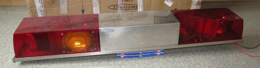 Federal Signal - TwinSonic Model CTS, Serie A1, 12 Volt Der Balken kommt ursprünglich aus den USA. Wo genau er im Einsatz war ist nicht überliefert und auch das genaue Alter ist nicht nachzuvollziehen. Es laßt sich nur anhand der Typenschilder und des Einführungsjahres des CTS auf den Zeitraum zwischen 1972-78 einschränken. Maße (circa):