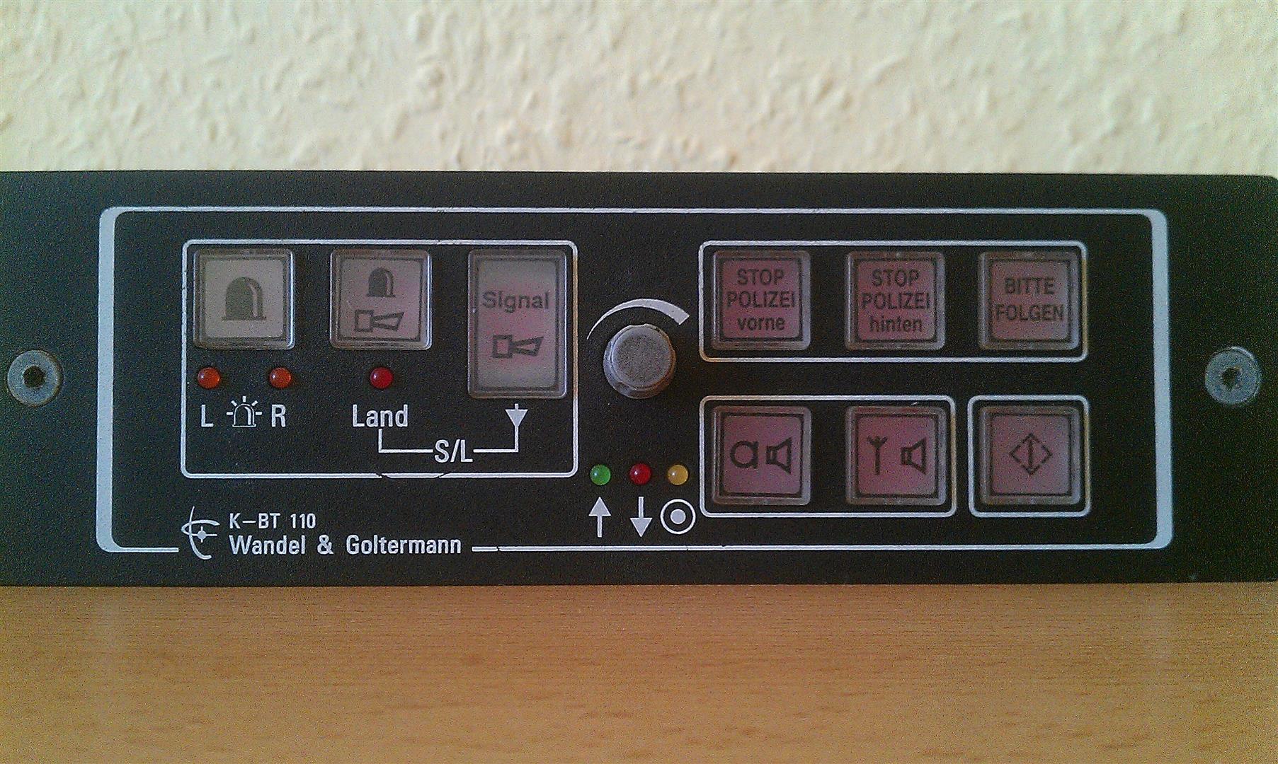 Hierbei um die Polizei-Version des K-BT 110. Das heißt, dass die drei "Display"-Tasten oben rechts gegeneinander verriegelt sind. Es ist also nicht möglich, den Anhaltesignalgeber vorne und hinten gleichzeitig zu aktivieren.