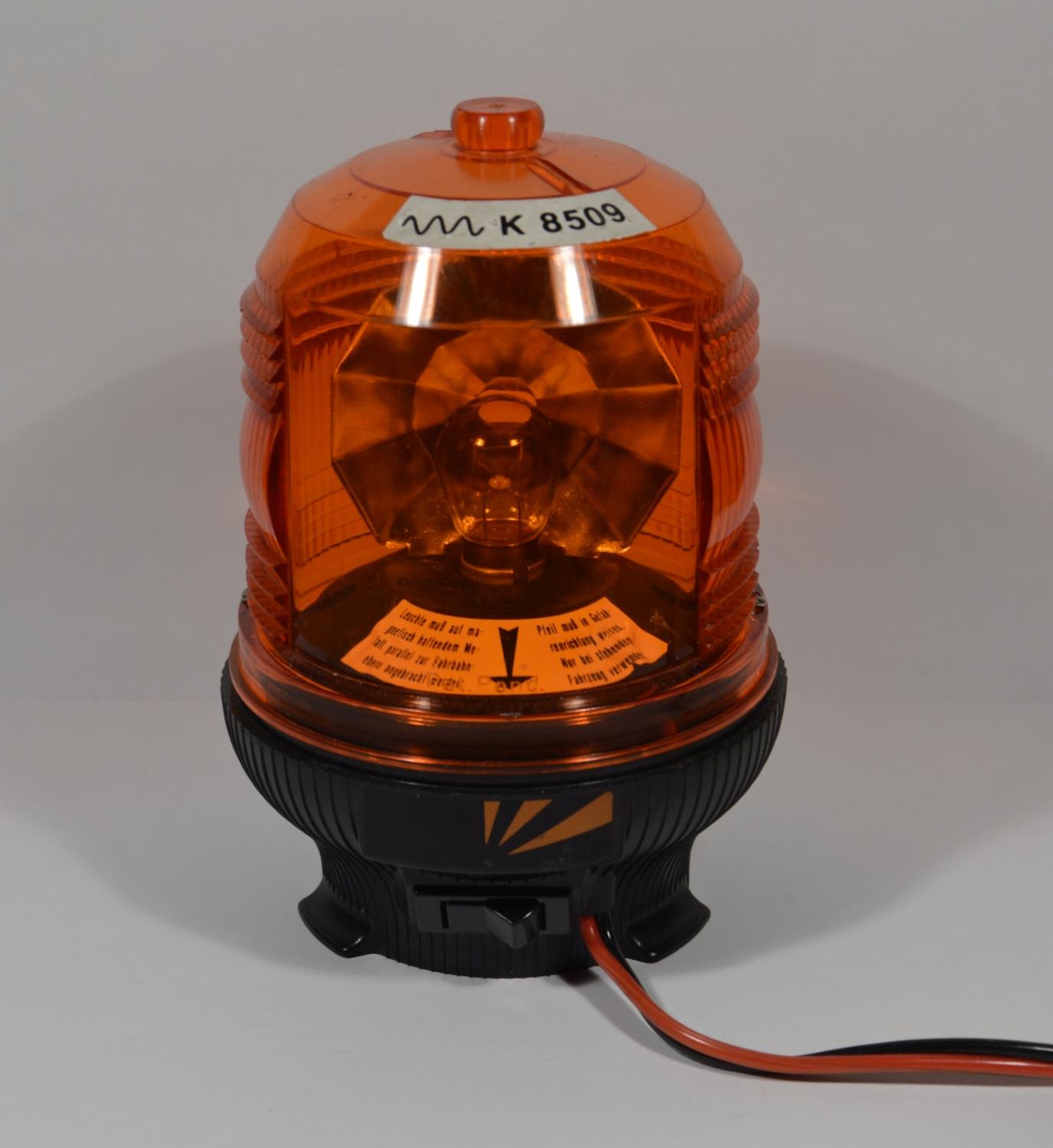 Spannung: 12 V Stromaufnahme: 1,7 A Maße (ØxH): 11,5 x 17 cm Bauform: C Diese Leuchte ist, auch wenn man es auf den ersten Blick vermutet, gar keine Drehleuchte. Der Name klärt auf: WBL steht für Warnblinkleuchte. Sie darf von Privatpersonen bei stehendem Fahrzeug verwendet werden, um nachfolgenden Verkehr zu warnen (vgl. Hänsch Effekta-Serie). Obwohl sie von Bosch vertrieben wurde, hat sie nie eine Bosch-Fabrik von innen gesehen. Sie ist eine Abwandlung der Sirena Lampcar, und wurde auch von selbigen hergestellt. Im Inneren befindet sich eine 21W-Lampe, die nach Umlegen des Schalters zu blinken anfängt. Der Facettenreflektor sorgt für eine Richtwirkung des Warnsignals. Die Fresnellinse der Haube hat hier allerdings keine Funktion, da das Licht nur durch das glatte Fenster abgestrahlt wird. Jedoch mach es die Leuchte ziemlich griffig. Die Stromversorgung erfolgt über ein ca. 3m langes, glattes Kabel mit einem Universalstecker. Die Zulassungsnummer wurde auf die Lichthaube aufgeklebt. Im Inneren befindet sich ein Hinweis zur Benutzung der Leuchte: "Leuchte muß auf magnetisch haftenden Metall parallel zur Fahrbahnebene angebracht werden. Pfeil muß in Gefahrenrichtung weisen. Nur bei stehenden Fahrzeug verwenden." Auf der Unterseite befindet sich ein Ringmagnet, der stark genug ist, die Leuchte bei stehendem Fahrzeug sicher auf dem Dach zu halten. Die Warnwirkung ist bei Nacht durchaus brauchbar, bei Tag allerdings nicht viel auffälliger als der normale Blinker. |