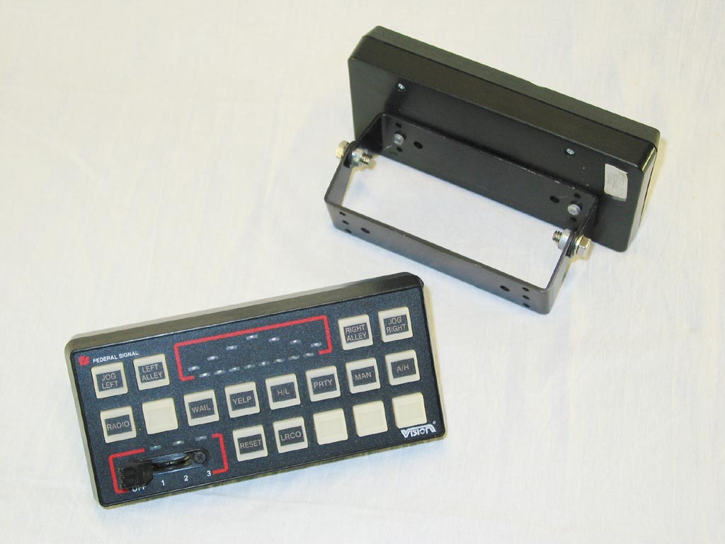 Federal Signal – Premium VISION Controller Der Controller besteht aus zwei Komponenten. Zum einen aus dem Bedienteil sowie aus dem Sirenenverstärker/der Relais-Box. Maße (in etwa):