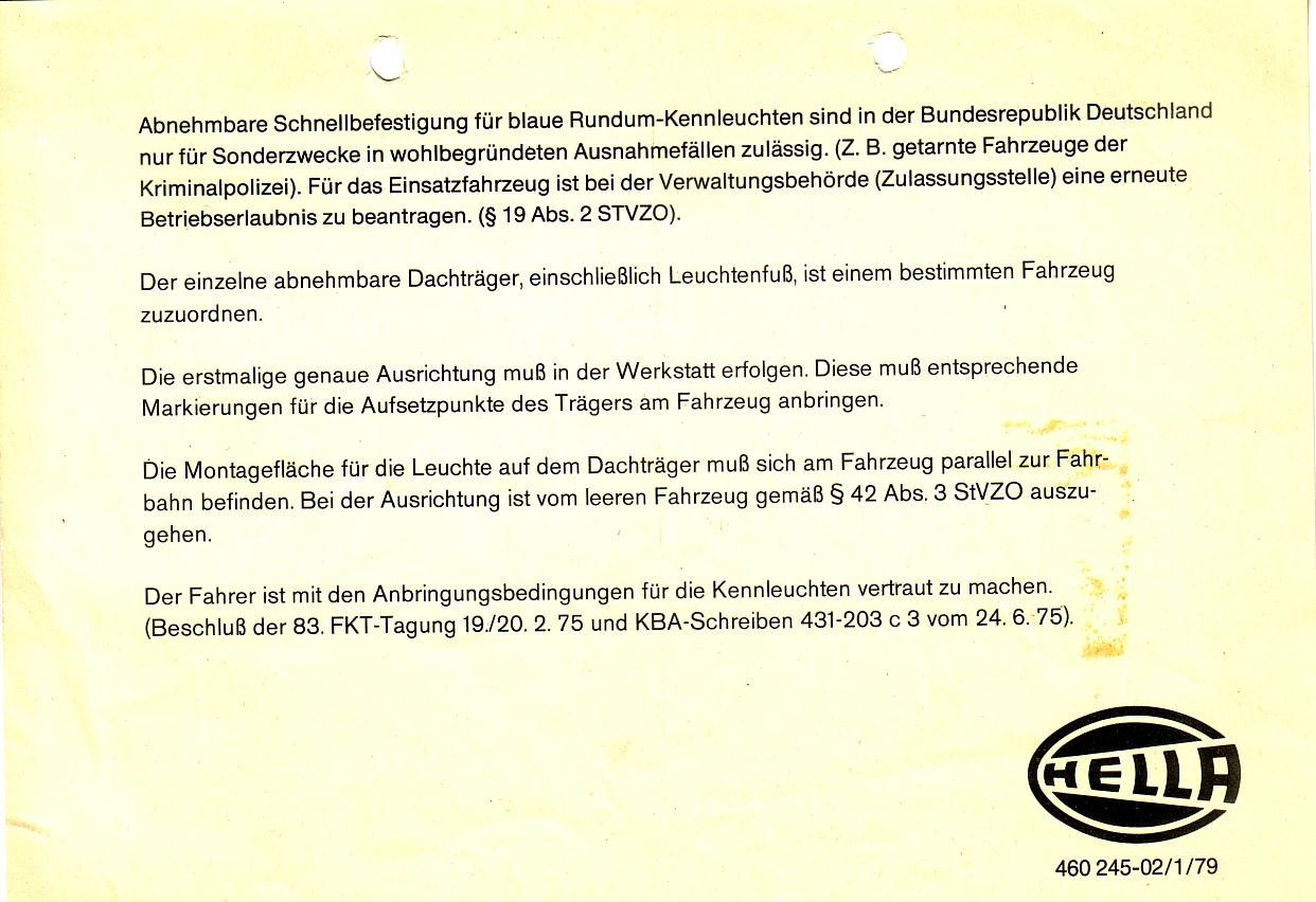 Was die erwähnte Zuordnung betrifft: In der Bucht habe ich eine KLJ70 Schnellbefestigung gesehen, auf der auf dem RKL Sockel das Kennzeichen mit Edding notiert war und auf einem zivilen Polizeifahrzeug habe ich vor vielen Jahren die erwähnte Markierung als 3 geklebte Punkte in Konfettigrösse wahrgenommen |