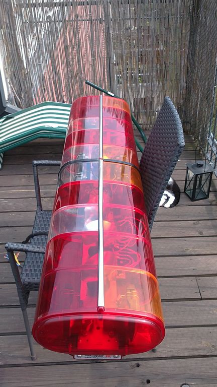 Nach der Grundreinigung und entfernen der externen Alley Lights wurden nur die Center Spiegel samt Flasher Relai entfernt und durch zwei weitere sealed beams samt Halterung ersetzt. Zudem kamen zwei kleinere Flasher Relai rein.
