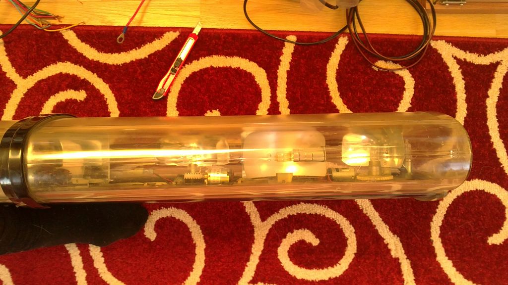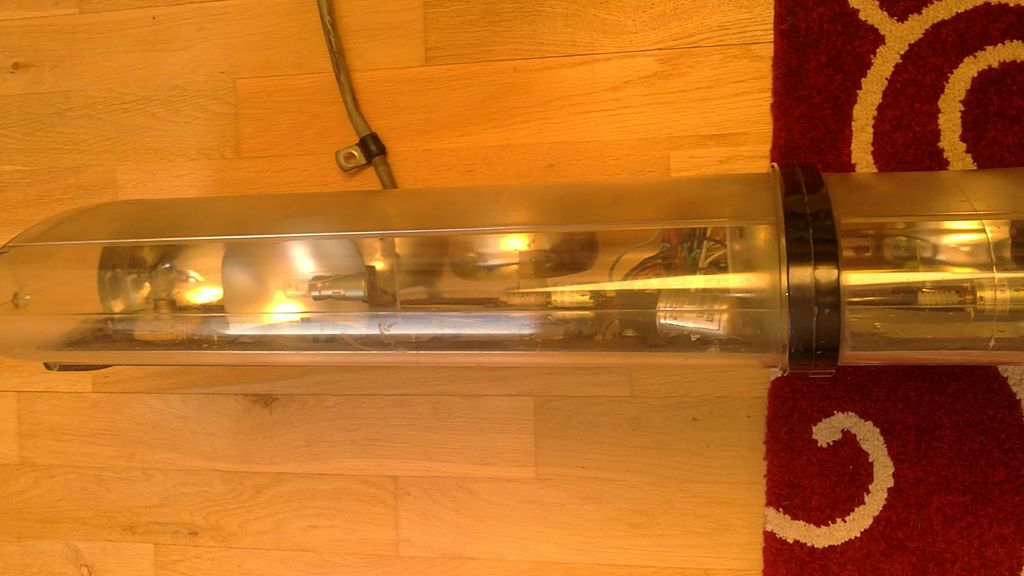 Die Hauben ist zwar relativ klar und eigentlich leicht polierbar. Beide großen Hauben haben aber Transportschäden. Zudem hat der Center dome ein Brandfleck außen.