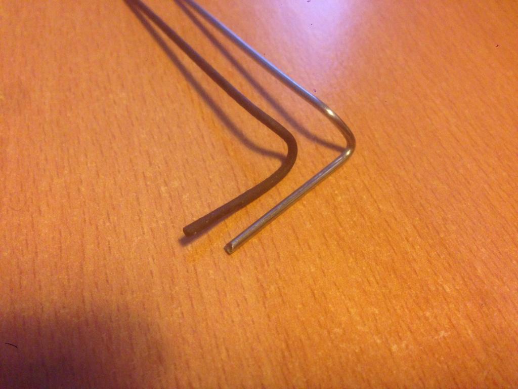 Hier ein paar Bilder: (Die Kurze Fahne an der linken seite war schon vorher an den Draht gebogen, wiegesagt ist nur der erste Prototyp)