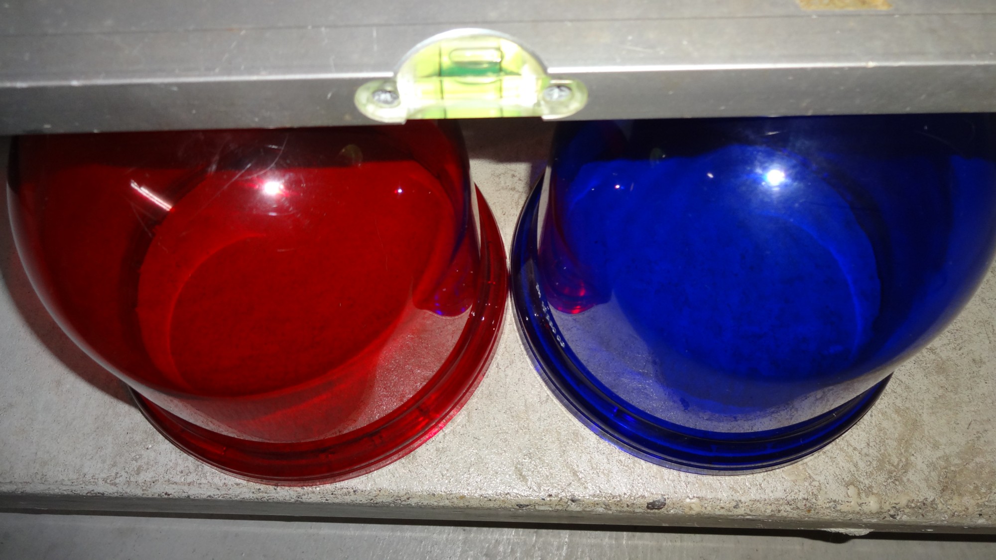 Bei den Chromringleuchten gibt es unterschiedliche Haubenhöhen bei Hella und Eisemann Wie ich durch Streiflicht gelernt habe, ist die KL8 Haube deutlich höher als die RKLE 130 Haube Aber bei der Chromringnachfolgegeneration der RKLE 130 sollte es keine Höhenunterschiede geben. Vielleicht fällt der Grat vom Fomspritzen ca.1mm unterschiedlich aus. Meintest Du das ? Demnach wäre gemäss Wasserwaage meine blaue RKLE 130 Haube sogar höher als die Rote Leider Blitzreflektion im zweiten Bild direkt auf der Libelle |