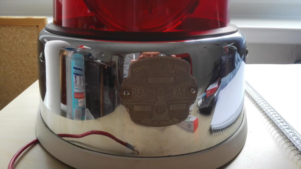 ![]() Heute kam das gute Stück an. Nichts kaputt gegangen und auch sonst wie beschrieben. Einzig das Typenschild ist ein wenig blass. Kunststoffhaube ist 9/10 (Handy nimmt das rot nicht gut auf). Ich denke mit ein bissel Reinigung, Politur und einem neuen label ist das Ding fit. Preis: unter 200€ inkl. Versand/Zoll Federal Signal Beacon Ray Model 17 12V Serien Nr. 2N16G6 Baujahr: Juli 1956 |