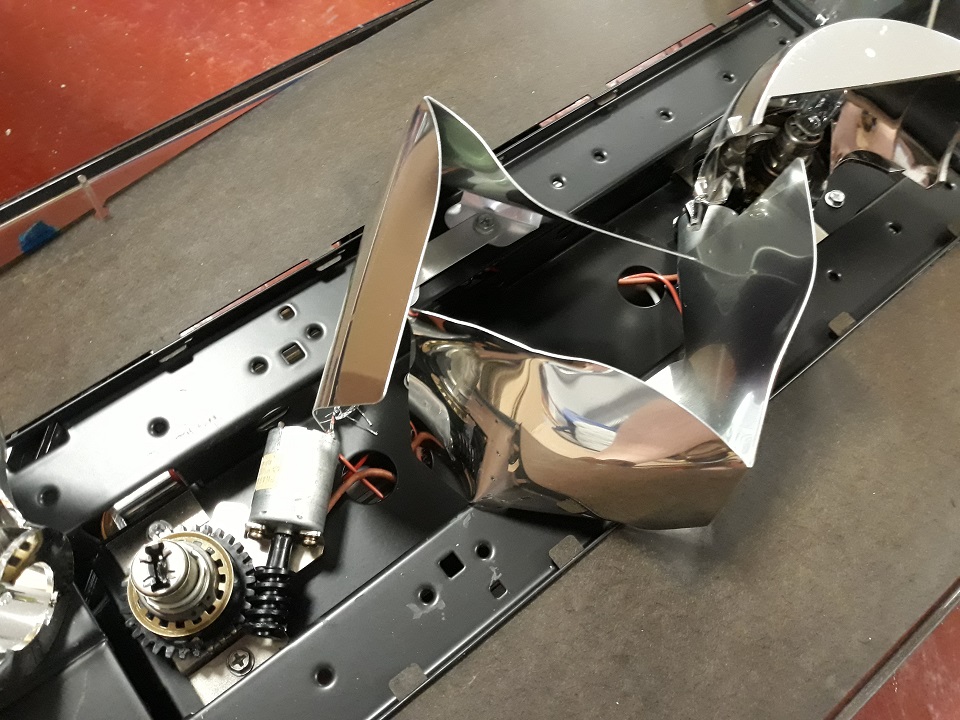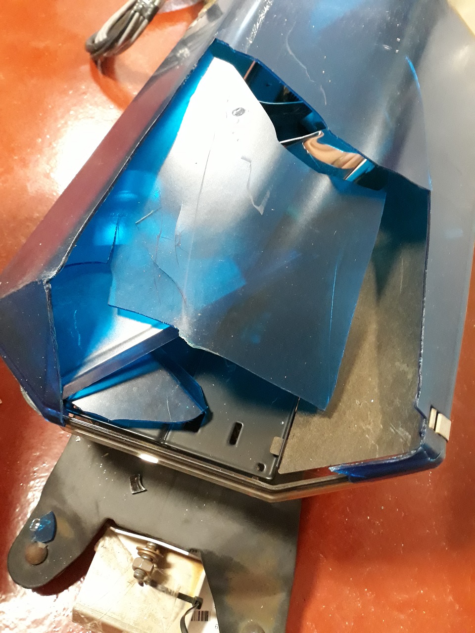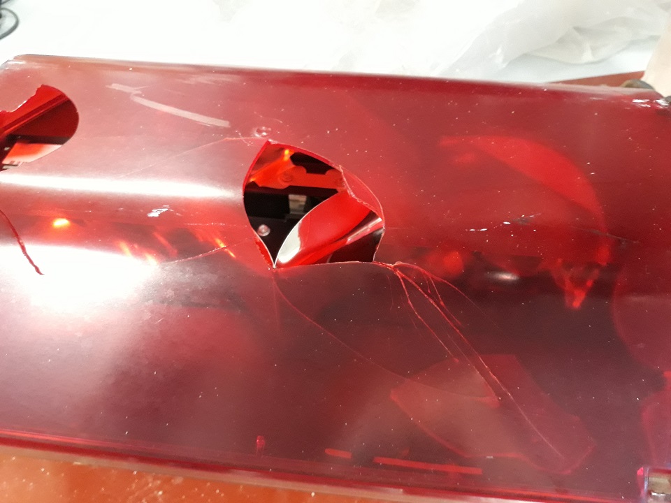 Nach dem Entfernen des Verpackungsmaterials war klar, dass das bisschen Folie um den Balken nicht ausreichend war. Die Domes sind zerlöchert und die Rotoren sowie Spiegel zerschmettert. Ich denke der Balken wird durch die Gegend geworfen worden sein bzw es wurden schwere Pakete darauf gestapelt.
