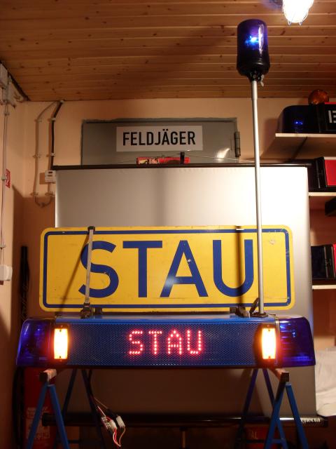 Wie läuft das denn im Detail ab. Hat jeder Streifenwagen, der auch im Balken die Option hat ein Stauschild im Kofferraum liegen?
