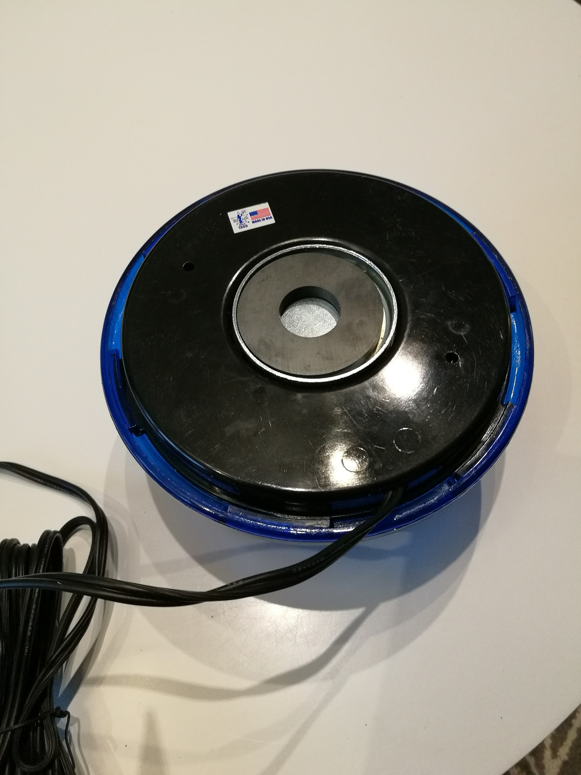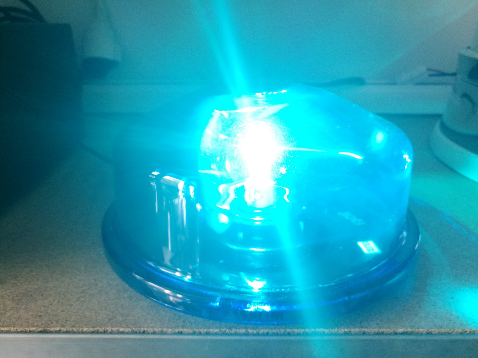 SVP/Star1889 hatte vor ca 10-15 Jahren die Leuchten HotShot/Teardrop und PanCake komplett auf Plastikbauteile umgestellt. Das alte Modell mit Metallsockel ist mir lieber. Diese Version hatte ich selbst, als die Metallversion in die Sammlung kam, ist dieses Teil rausgeflogen. Immerhin hat diese Version noch die US typische Drehgeschwindigkeit von ca 90fpm. Die anderen neueren Star Leuchten rotieren nun ca. 170 pro/min. |