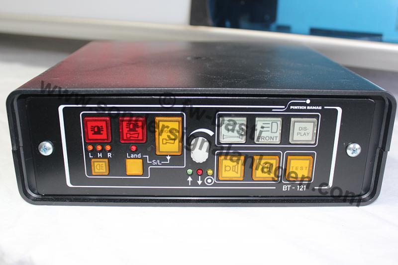Angesteuert wird der Balken über ein BT 121 F/N, welches ich im Lager liegen hatte. Das Bedienteil ist im Kasten komplett verkabelt, sodass nur der balkenseitige Kabelsatz an der Rückseite angesteckt werden muss. Eine Umschaltung auf das Kompressorsignal ist im laufenden Betrieb jederzeit über die Taste möglich. Die Frontblitzer können ebenfalls separat zugeschalten werden.