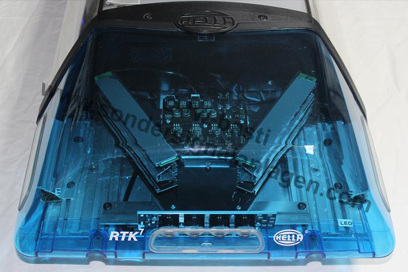 Typ: RTK 7 Leuchtmittel: LED Leuchtfarbe: LED Blau / Hauben Blau Balkenbreite: 1.100mm Baujahr: div. Hintergründe zum Balken: Meine 2. Blaue RTK7 entstand komplett aus Einzelteilen und ist nach meinen Wünschen zusammengestellt. Es handelt sich um eine Feuerwehr PKW-Anlage, welche eine Besonderheit in Form von 2 Powerblitzen besitzt. Ursprünglich hatte ich einen ASW verbaut, diesen habe ich jedoch vor kurzem gegen den 2. PB ausgetauscht. Ebenfalls eine kleine Besonderheit ist der Deckel, welcher Halter für ein Stauschild besitzt. Letzteres ist noch nicht vorhanden, steht aber auf der Wunschliste für die kommende Zeit. Da die RTK 7 mittlerweile ja hinlänglich bekannt ist und schon des Öfteren vorgestellt wurde, verzichte ich hier auf genauere Detailfotos der verbauten Module. Verbaute Komponenten: