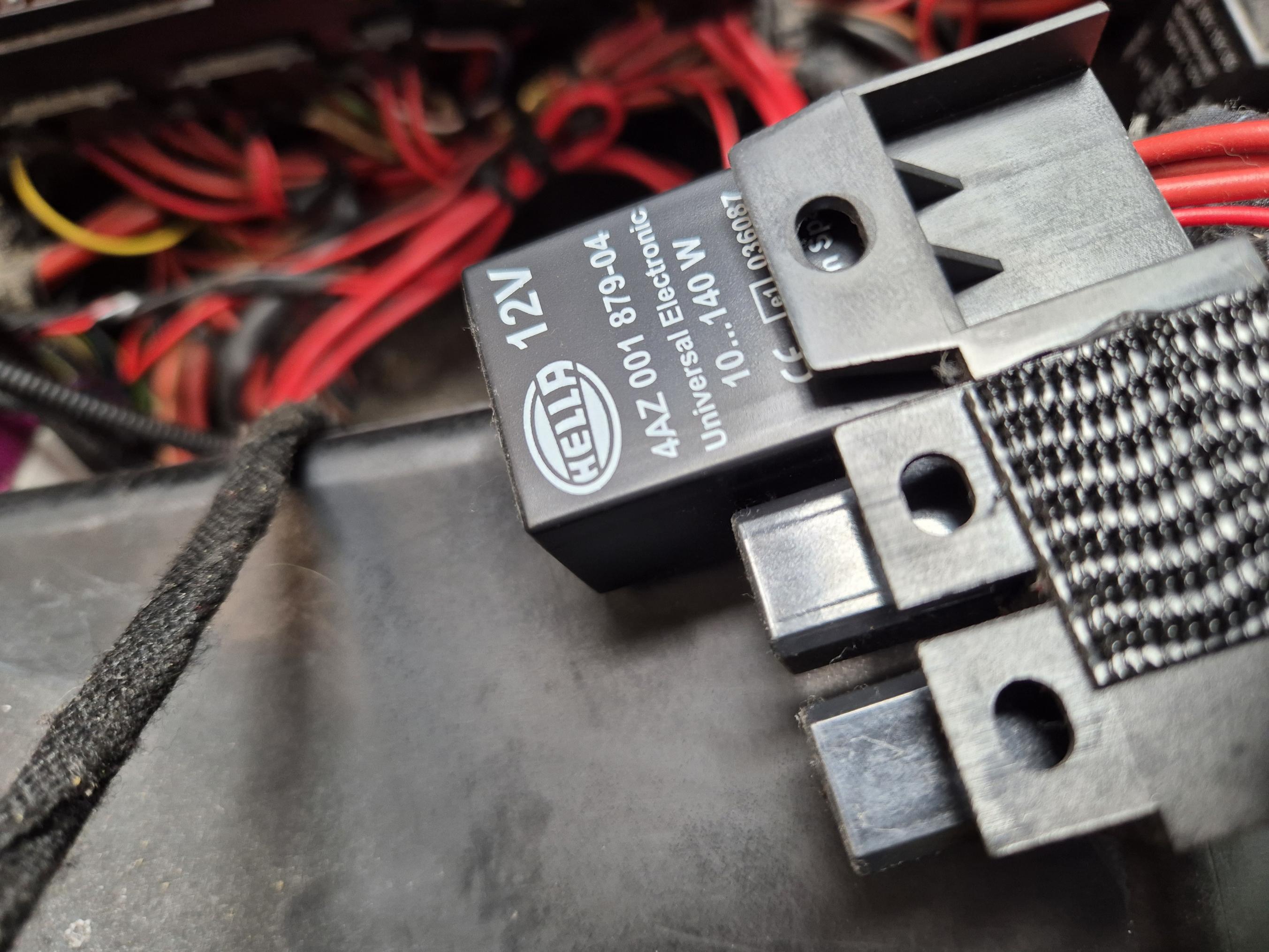 Neben dem Bedienteil ist ein Kippschalter mit "Springlicht" Beschriftung. Es wird vom BT das "Kennleuchte ein" Signal abgegriffen. Von dem Schalter geht es dann unter den Fahrersitz zu diesen 3 Relais (siehe Anhang)