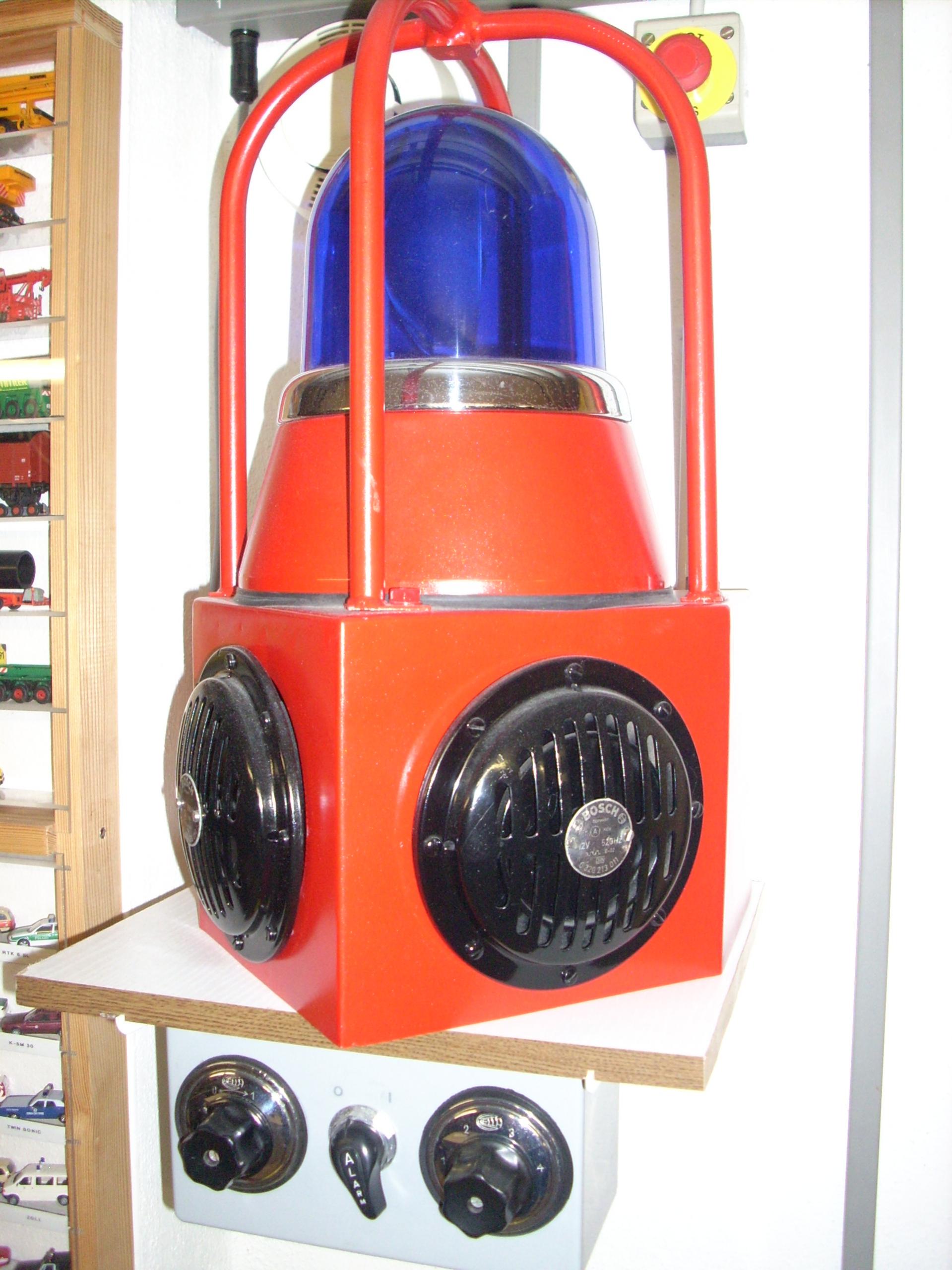 Die Anlage auf Bild zwei gibt es so für die Feuerwehr und ich blau für das THW. Die waren oft vorne mittig an Kofferaufbauten auf Unimog. |