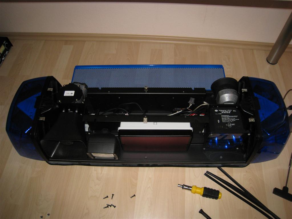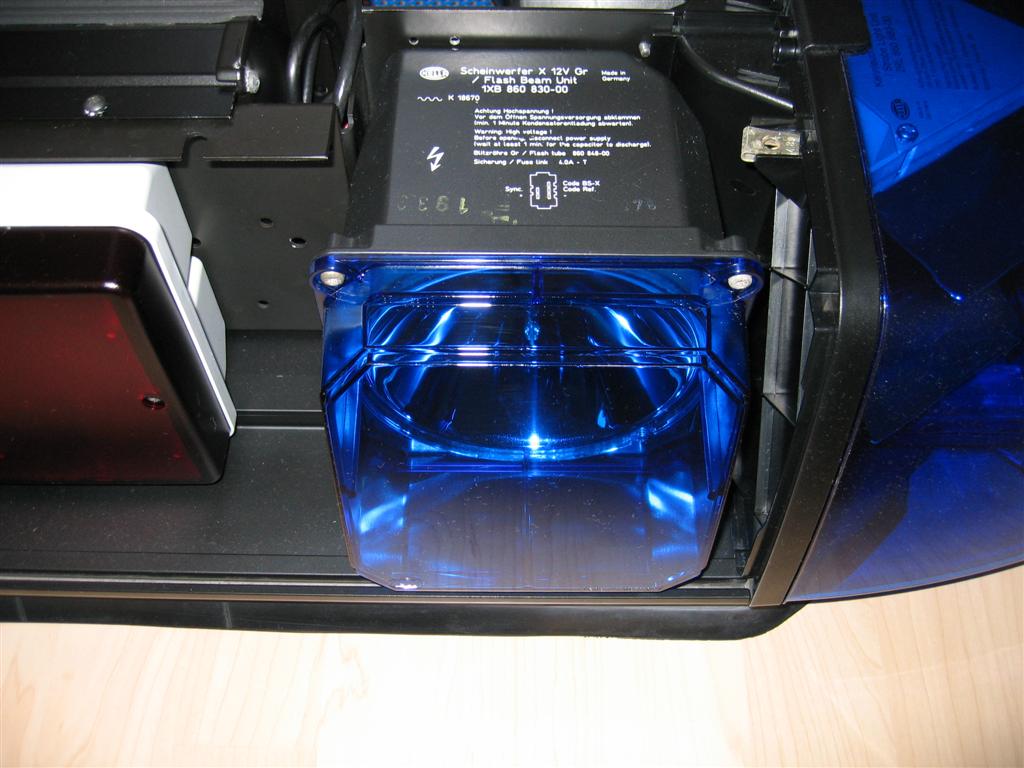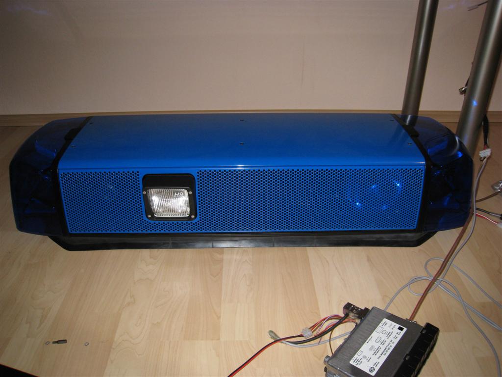 Die komplette Anlage wurde zerlegt und saubergamacht. Die Bodenbleche wurden neu lackiert. Mehr war diesmal nicht zu tun. Zusätzlich baute ich jedoch noch einen grossen Frontblitzer (BSX-F) ein sowie einen Hecklautsprecher (LSP-H). |