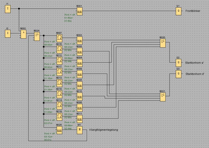 Und hier mal die erste Logo-Programmierung. Ohne jetzt einen Live-Test gemacht zu haben, sieht es an den Ausgängen sehr gut aus.