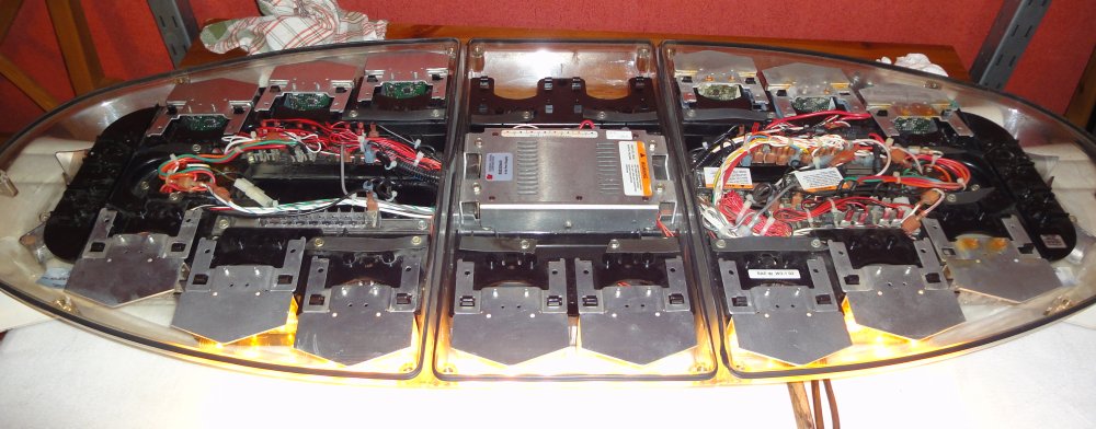 hier mal wieder was neues in meiner Sammlung. Frisch und original vom LA County Sheriffs Dept: Federal Signal Arjent Ausstattung: - 4 x 6 Cuda LED packs, je 2 in Rot und Blau blitzend nach vorne - 2 x 6 Cuda LED packs, steady burn in Rot und Blau nach vorne - 2 Halogen Takedown Scheinwerfer, je nach ansteuerung alternierendes Blinken oder Dauerleuchten - Intersection Strobes - Alleylights, je nach Ansteuerung alternierendes Blinken oder Dauerleuchten - 2 x 6 Cuda LED packs, je 1 in Rot und Blau blinkend nach hinten - 6 x 6 Cuda LED packs in orange als traffic advisor Sozusagen in Vollausstattung. Hier mal zwei Bilder als Appetithappen, weitere folgen nach der Reinigung. Aber so viel sei gesagt: Der Balken ist einfach nur der Hammer... ![]() ![]()