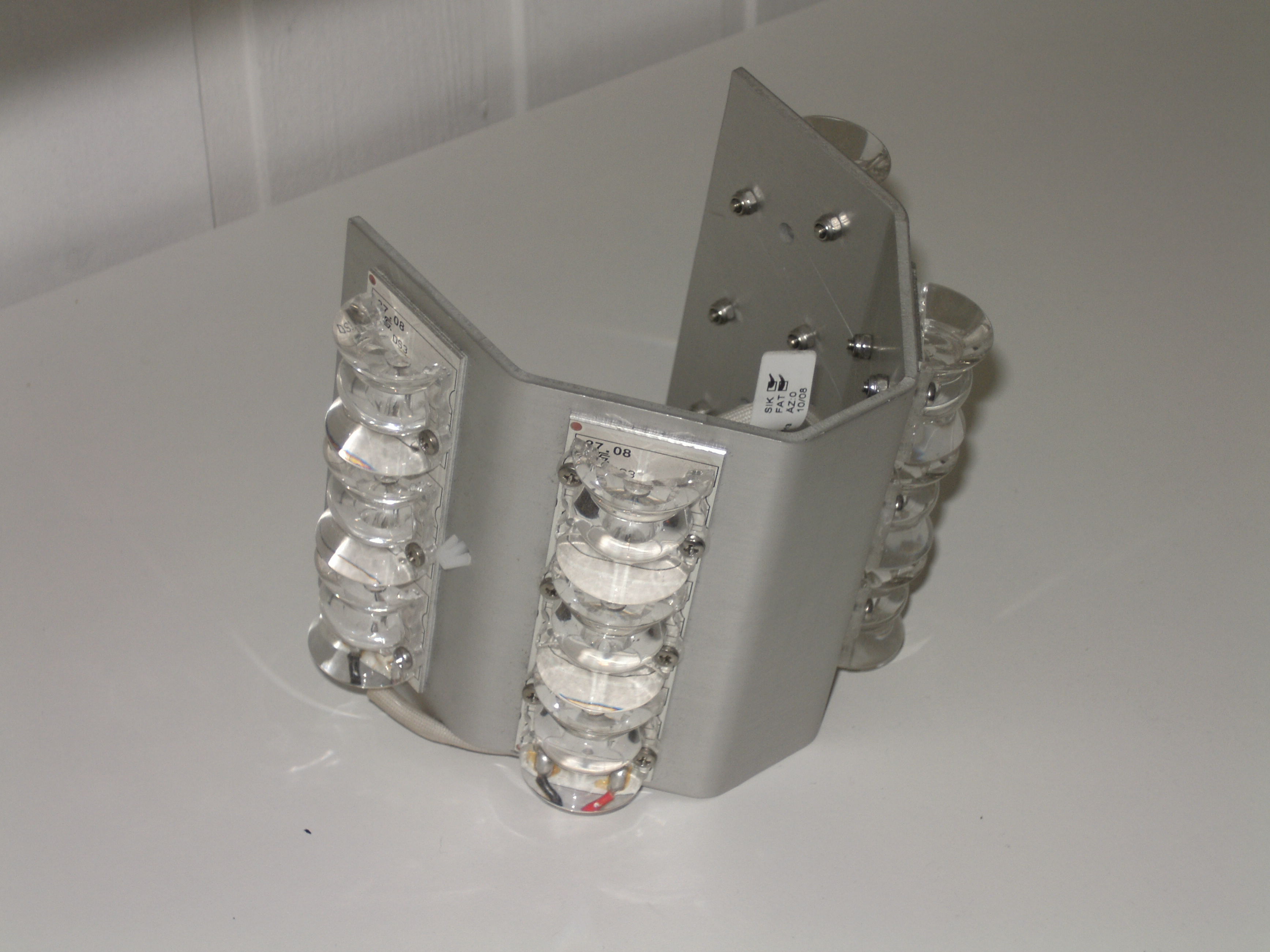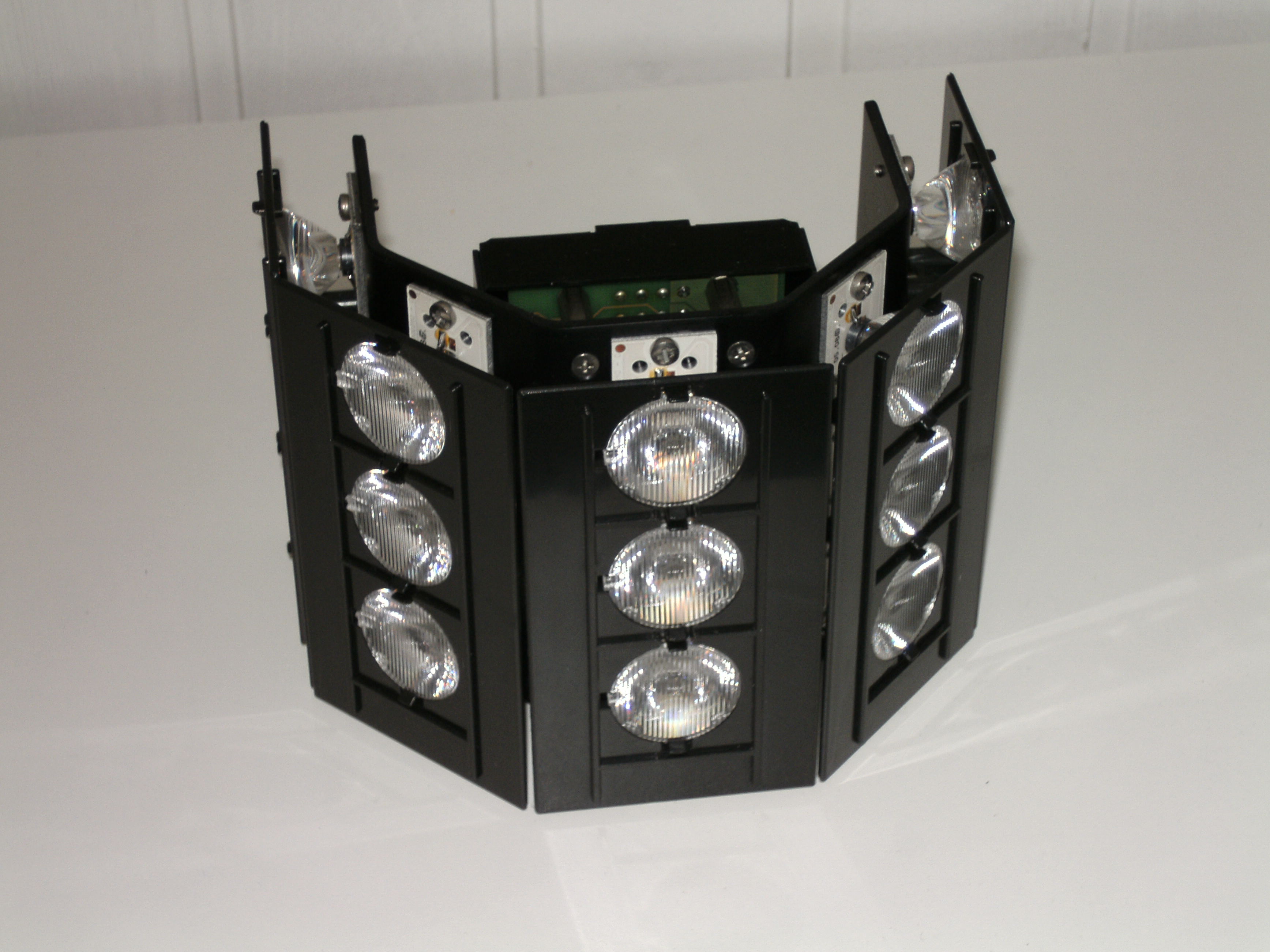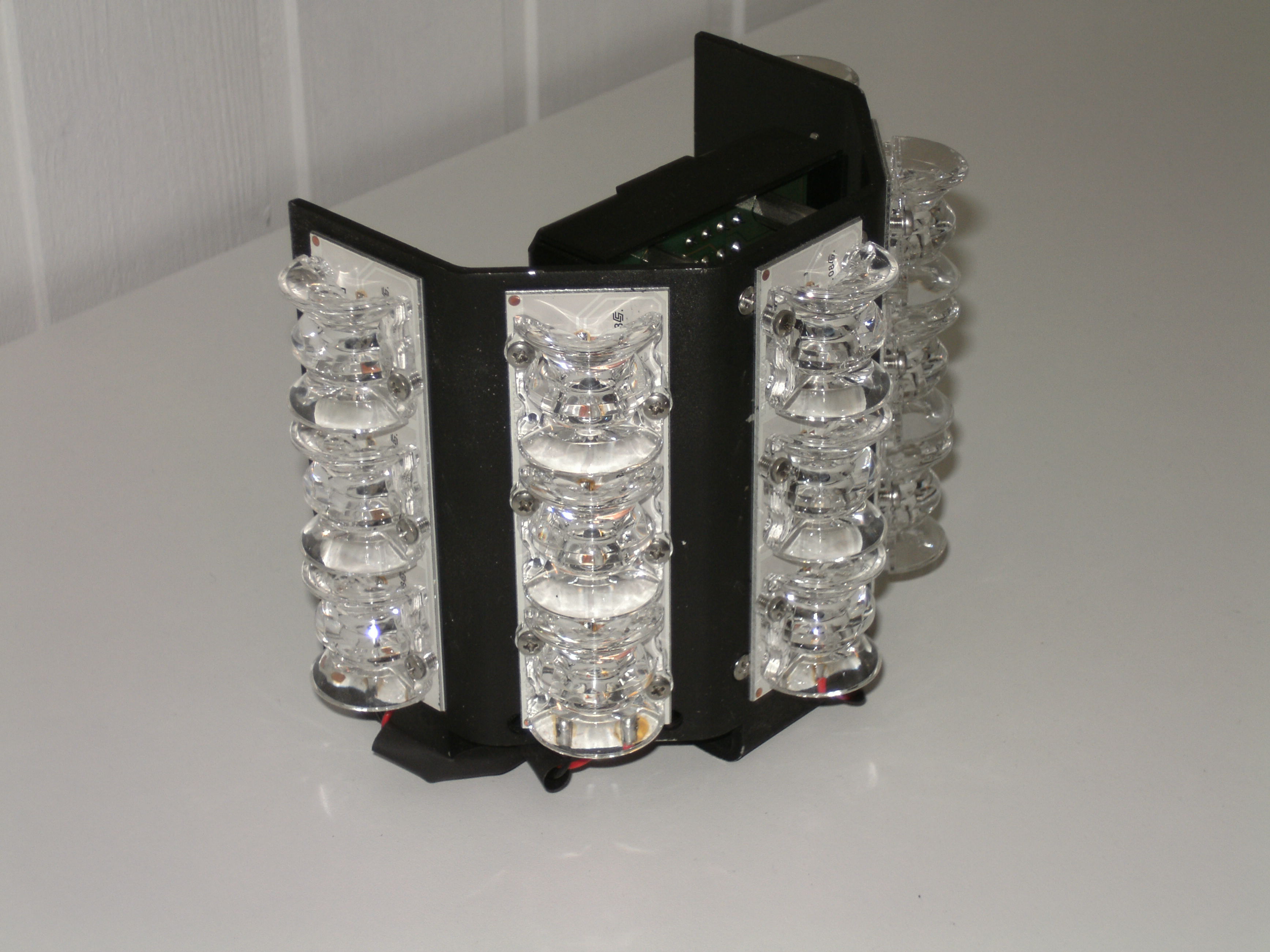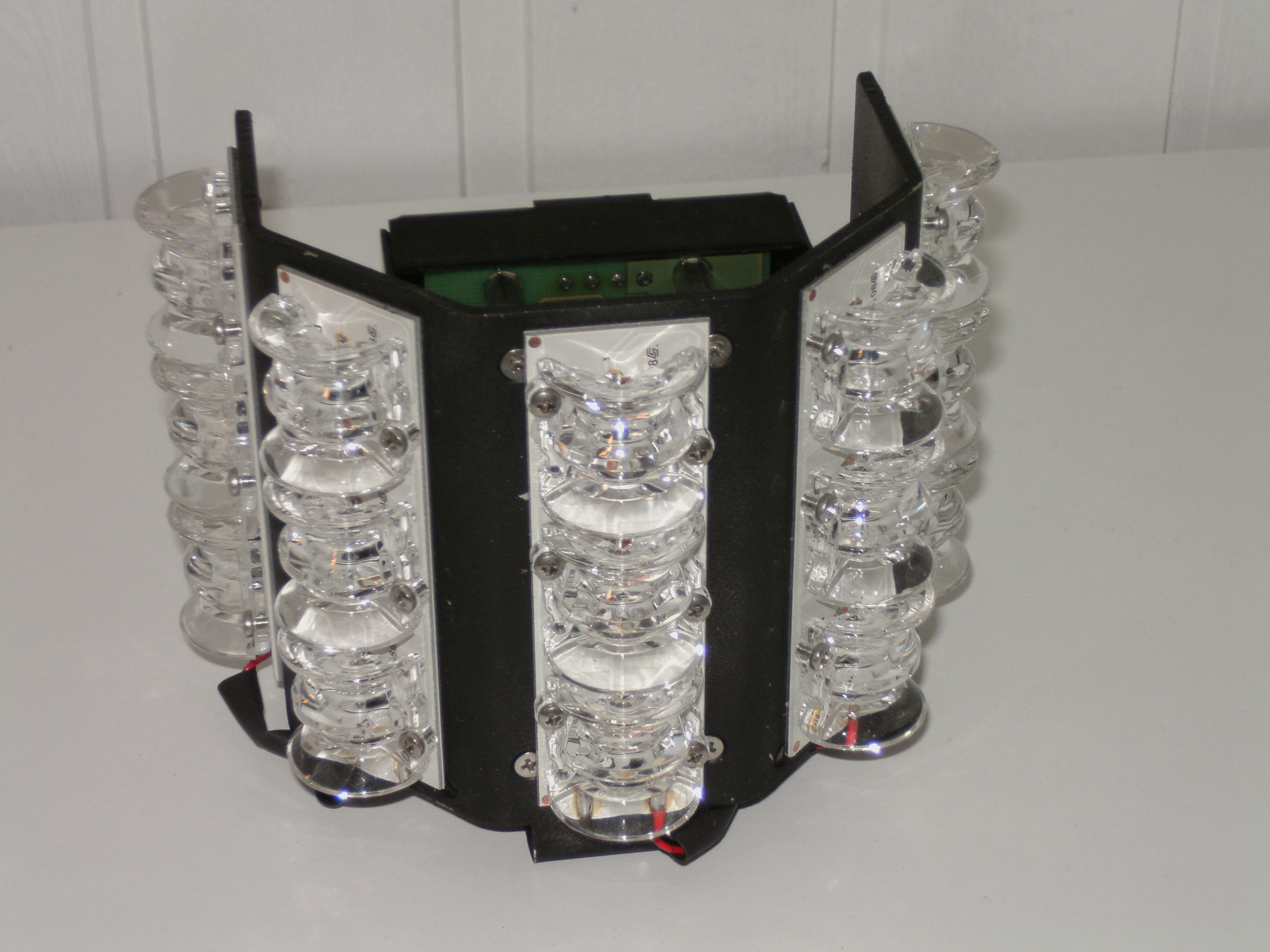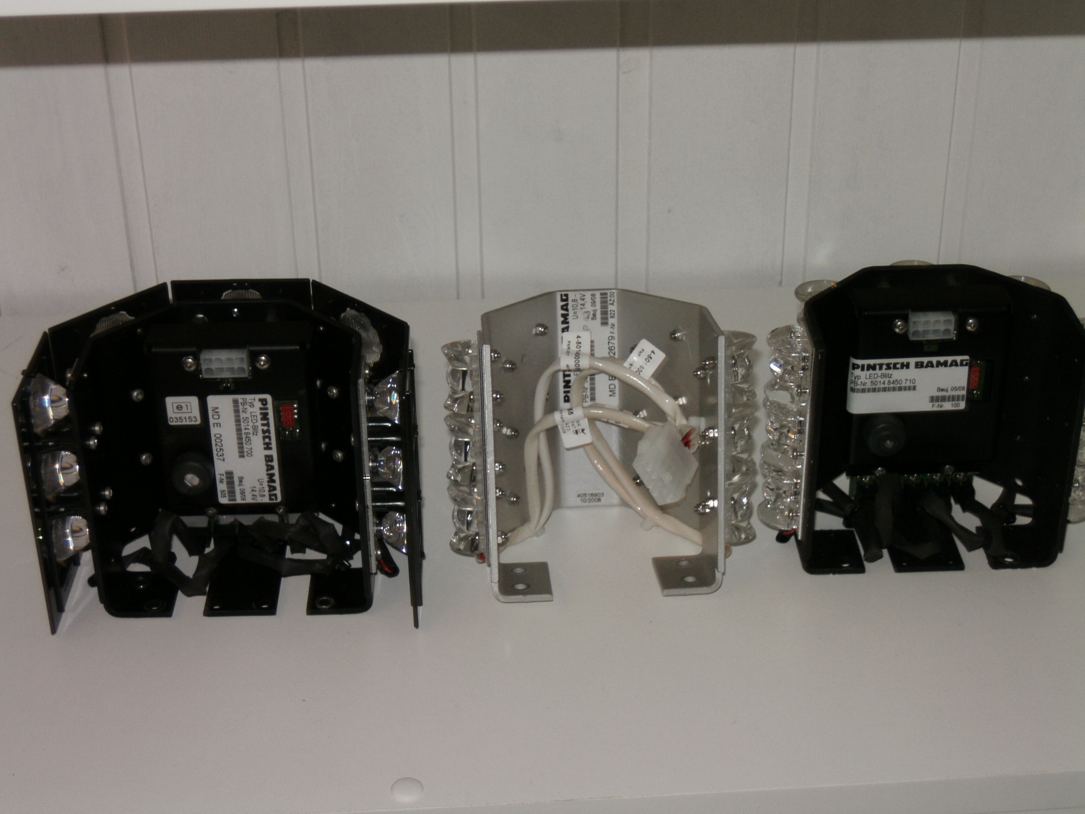 Zweite Version: Led-Modul mit externer Steuerung. Gehäusefarbe silber. Speziell entwickelt für die Polizei. Bestückung fast nur mit 4 Platinen pro Modul. Im Einsatz: Pol NRW, POL Sachsen-Anhalt, Nedersachsen, etc. Auch vereinzelt im Feuerwehrbereich zu finden.
