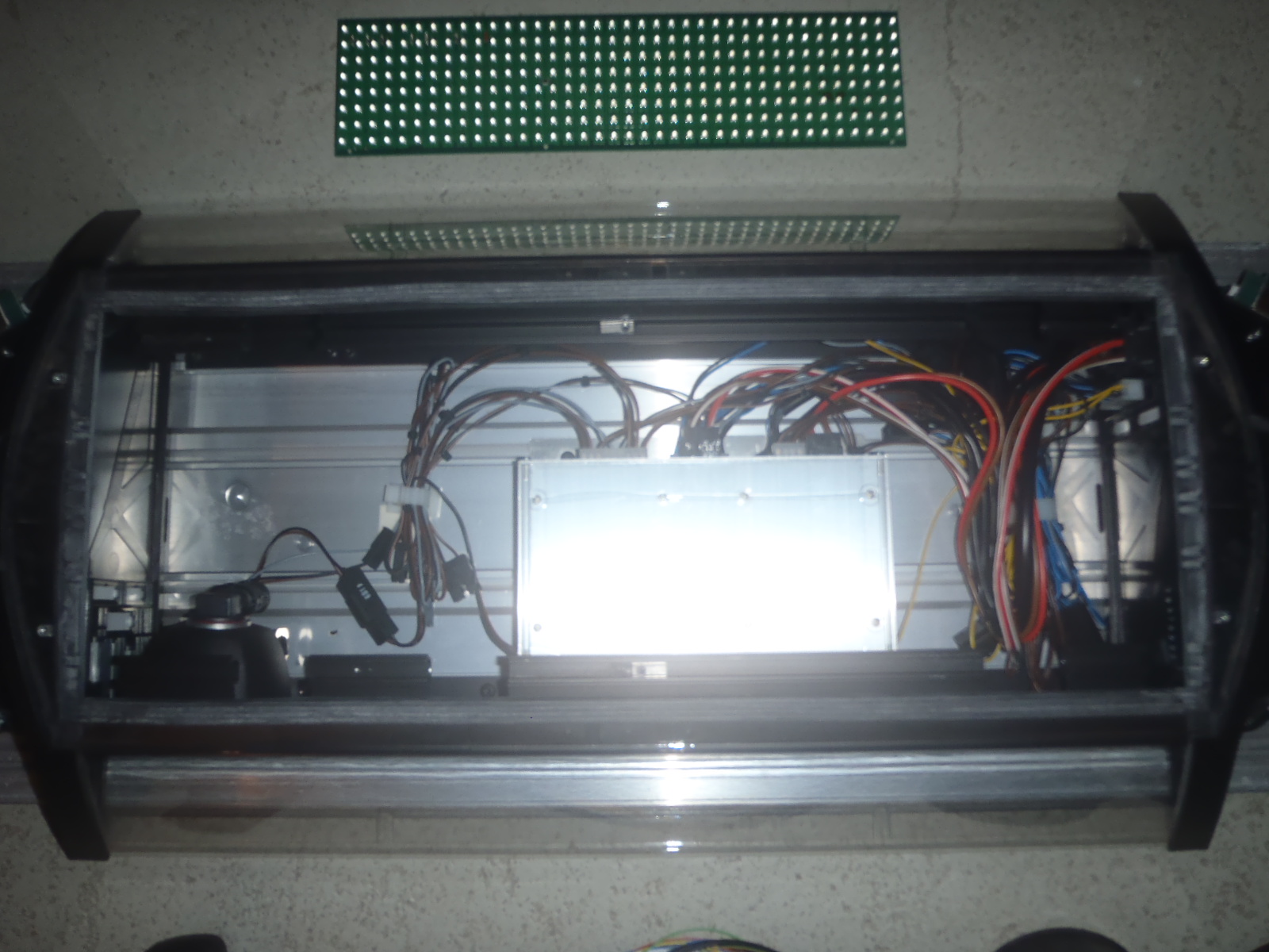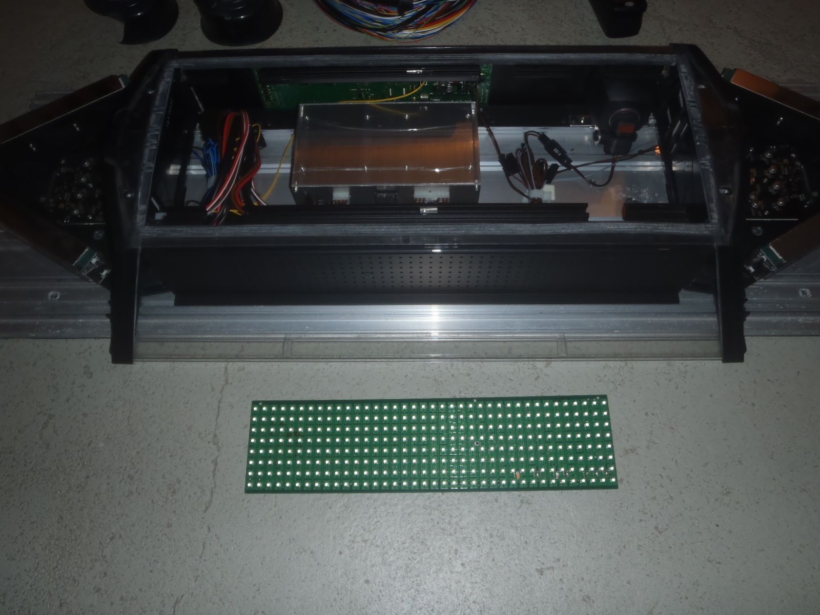 .Die Anlage ist unheimlich sauber, der Kabelbaum hat 65 Adern!! Die grüne Platte ist ein Vollmatrix- Display, derzeit hat sie nur Stop Polizei / Bitte Folgen. Hier ein paar Bilder: |