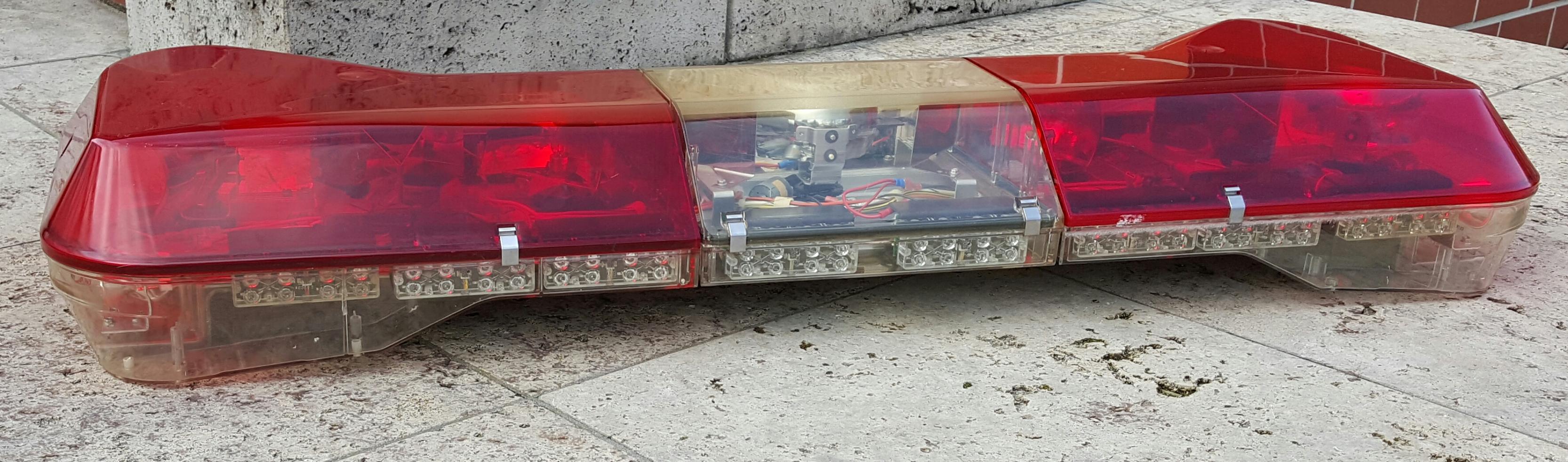 Code 3 360 Dieser Balken sind eigentlich 3, denn soviele Versandversuche hat es gebraucht um aus allen einen fast vollständigen zusammen zu bauen. ![]() ![]() Durch die besondere von oben zu erkennde Bauform hat es mir jeweils Teile der äusseren Hauben zerschlagen, bei den beiden Balken die mit Lichtoptionen in den "Erweiterungen" nach vorn kamen waren selbige jeweils ausgebrochen, die eigentlich 2 Intersection Lights übereinander waren danach nur noch Kernschrott, hier suche ich noch nach Ersatz. Aktuell sind also 5 Dreher (4 langsame, 1 schneller), je 2 Alleylights pro Seite, 6 LEDX Module nach vorn (2 dauerleuchtend blau, je 2 blinkend rot und blau) und 8 LEDX Module nach hinten (4x blau, 2x rot, 2x amber blinkend) verbaut. Nach dem ganzen Aufwand kann ich jedem Sammler hierzulande nur davon abraten sich einen solchen Balken per Post schicken zu lassen, das frustriert seeehr stark. ![]() Wenn er dann aber komplett ist freut man sich umso mehr einen nicht ganz alltäglichen Balken in der Sammlung zu haben. |