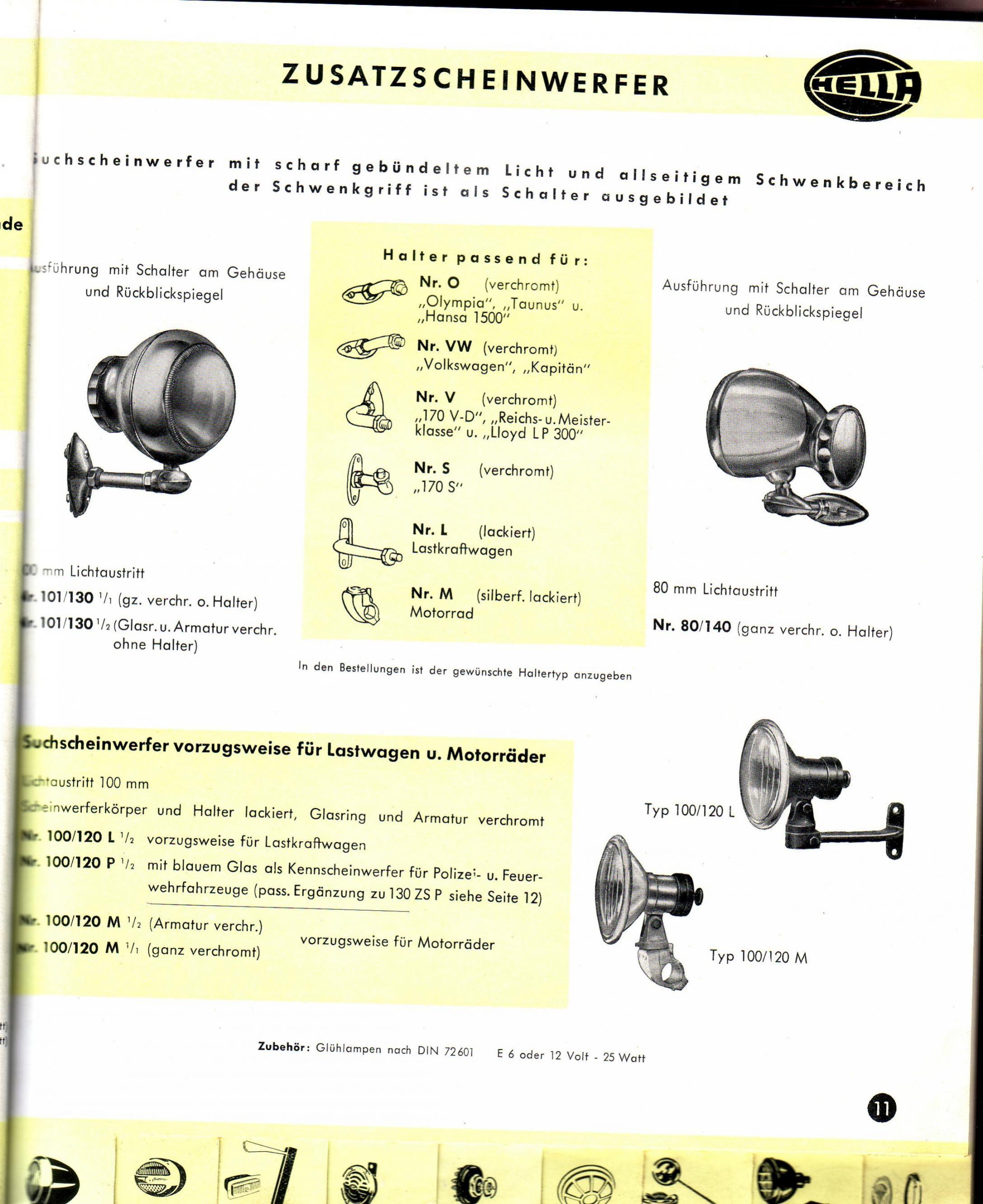 Hella früher 50ger Jahre, siehe Katalog oben links, offenbar hatte der noch einen zusätzlichen Spiegel eingeklebt. Leider ist der Scan vom Katalog beschädigt... |