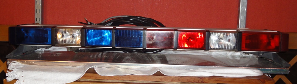 Rückseitig: Cornerstrobes, und ein geteilter Aufbau in der oberen Hälfte Blaue und Rote Halogenflasher, in der unteren Hälfte ein Arrowstick. Die Filter liegen innerhalb klarer Hauben, die mittleren Leuchten des Arrowstick sind nach oben nicht zu der klaren Hälfte abgegrenzt, so das bei Betrieb des Arrowstick in der Mitte Gelb ind Weiß leuchtet.