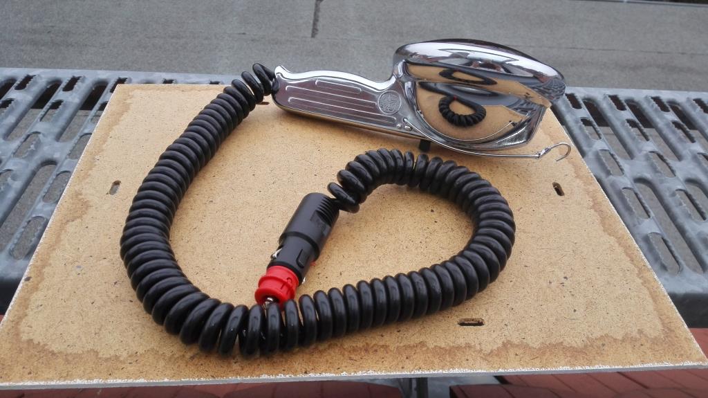 Model: 772K12 12 Volt Ausstattung: - 1 sealed beam 4416 (klar oder rot) Das Spiralkabel ist original, nur der cigar plug ist deutsche Ware. Es gibt beide Varianten: Spiralkabel und glattes Kabel |