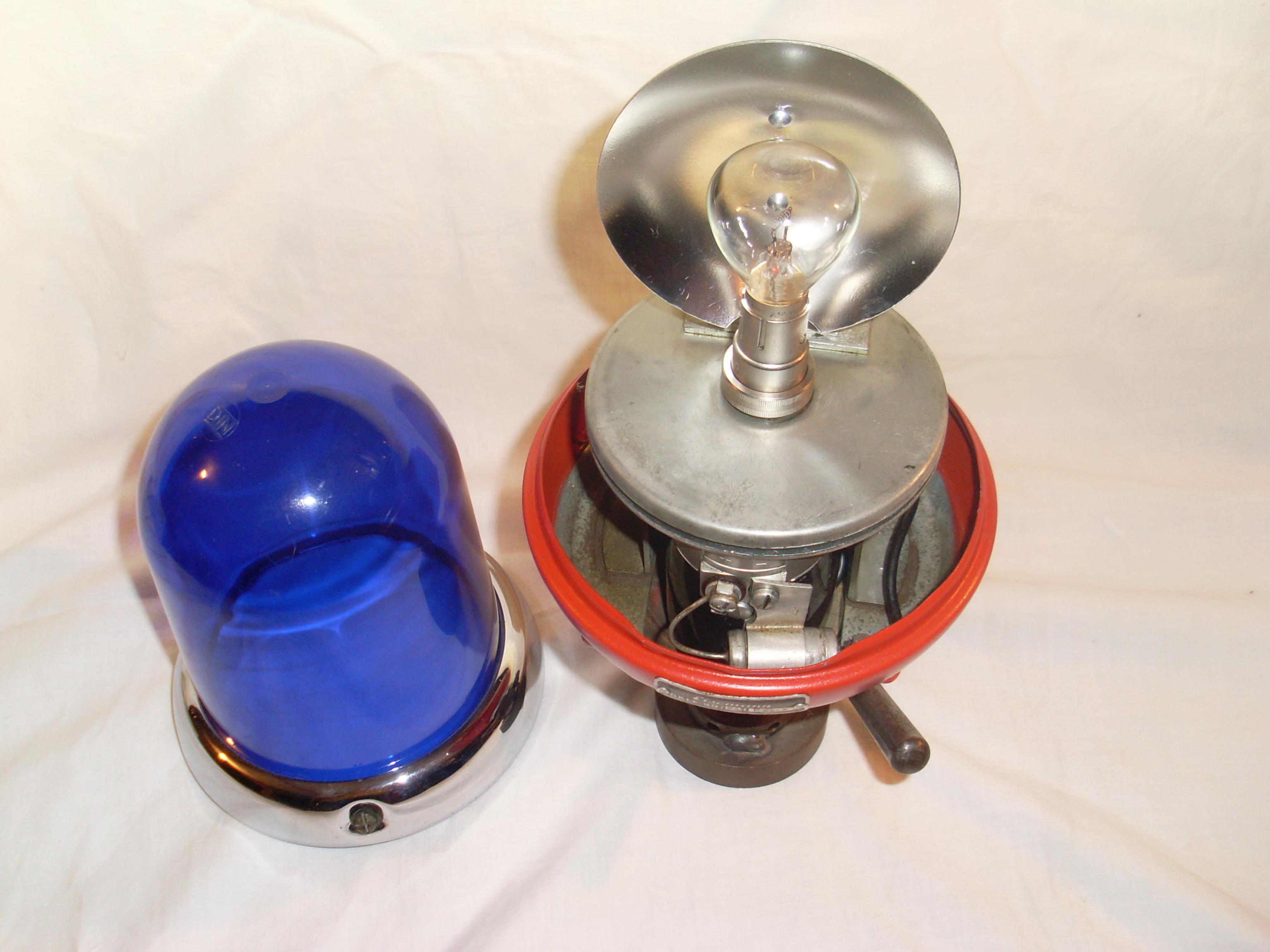 Also: RKLE 90 ist die Leuchte. 24 ist die Voltzahl. E6A bedeutet: Aufsteckfuß für 24 mm Zapfen mit Steckereinsatz. B bedeutet Blau. Die "2" weiß ich noch nicht, werde es aber auch noch rausfinden. Die Rundumleuchte hat einen normalen Blechspiegel, einen Scheibenwischermotor und eine 24 Volt / 45 Watt Lampe eingebaut.