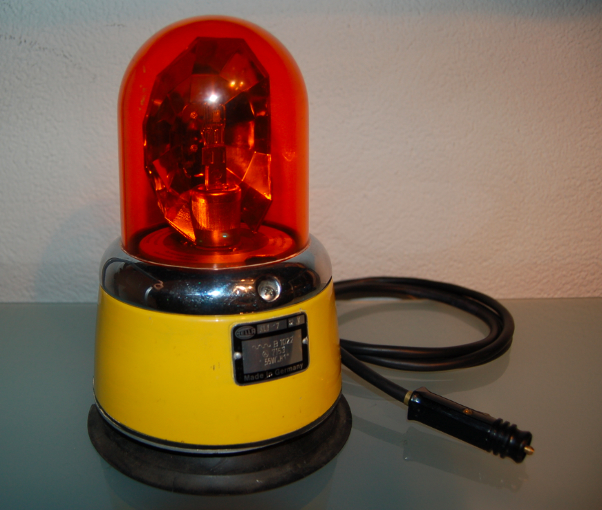Dennoch war ich überrascht, dass der Magnetfuß mit dem Firmennamen Royer versehen ist. Daher habe ich mich erkundigt und erfahren ,dass die Firma Royer ab ca. Mitte/Ende der 1960er Jahre Hella Kennleuchten mit Magnetleuchten versehen hat und die Sockel mit bekannten Hella Grauton, je nach Haubenfarbe umlackiert hat, bei dieser in einen Gelbton.