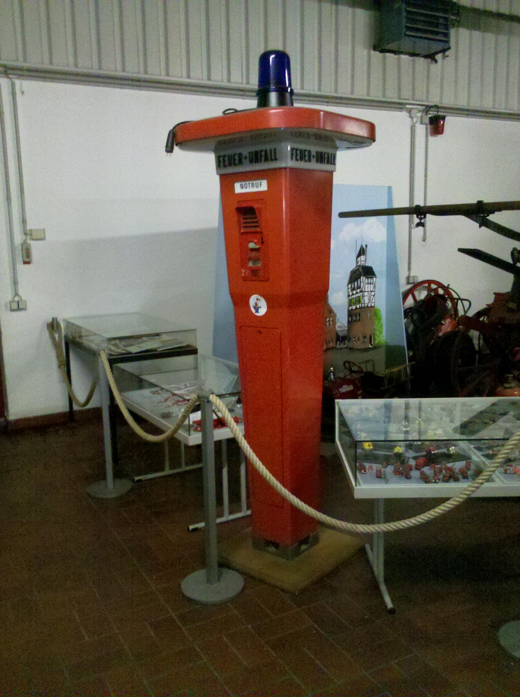 Seit 1924 gab es in Berlin Polizei-Straßenmelder, die an das Telefonnetz angeschlossen waren. Die Beamten im Straßenaufsichtsdienst konnten darüber mit ihrem nächstgelegenen Polizeirevier in Verbindung treten. Aber erst 1956 wurden auf der Internationalen Polizeiausstellung in Essen Notrufanlagen vorgestellt, mit denen auch Bürger jederzeit kostenlos die Polizei alarmieren konnten. Diese Notrufsäulen - auch "Eiserner Schutzmann" genannt - krönte eine Rundumkennleuchte, die bei Betätigung des Hebels zum Aufbau der Sprechverbindung zu leuchten begann. Mit zunehmendem Ausbau der Telefonnetze verschwanden diese Notrufsäulen aus unserem Straßenbild.
