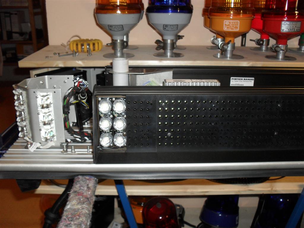 Ein Kennleuchtenmodul, man sieht auch noch einen zusätzlichen, freien Stecker an den vermutlich die IR-Einheiten angeschlossen werden können.