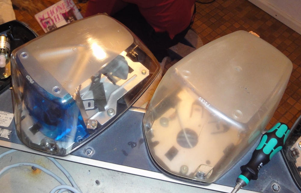Hab ihn selbst unter der Werkbank rausgepellt. ![]() ![]() Bin heute schon ein ganzes Stück weiter gekommen beim Zerlegen. Der Signalmaster wurde komplett demontiert und gereinigt, die Linsen vom SM wurden poliert und versiegelt, 2 H1 Leuchtmittel erneuert und die erste Haube fertiggestellt. Alleine diese Haube hat fast ne Stunde gedauert, ist aber echt gut geworden. Hatte ursprünglich nicht gedacht das die noch zu retten sind. ![]() Natürlich ist das Profil unter den Pods schwarz wie ihr es gesagt hattet, ich belasse es aktuell dabei, da im Moment das Lackieren zu viel Zeit brauchen würde. Das wird nachgeholt wenn die Umbauarbeiten am Haus weiter fortgeschritten und das Sammlungszimmer samt Werkstatt fertig sind. Frage: Welche Bezeichnung haben die Leuchtmittel im Signalmaster und in den Bajonettfassungen der Smart Pods? Weitere Bilder in folgender Reihenfolge: - Teilzerlegter Vector während der Reinigung - Smart Pod (Rechts) und langsamer Dreher mit rear flasher (Links) - Profil unter einem Pod - Signalmaster zerlegt - Signalmaster nach der Reinigung mit polierten und versiegelten Linsen - 2 Bilder der Haube vor und nach der Reinigungsarie Updates folgen je nach Fortschritt.