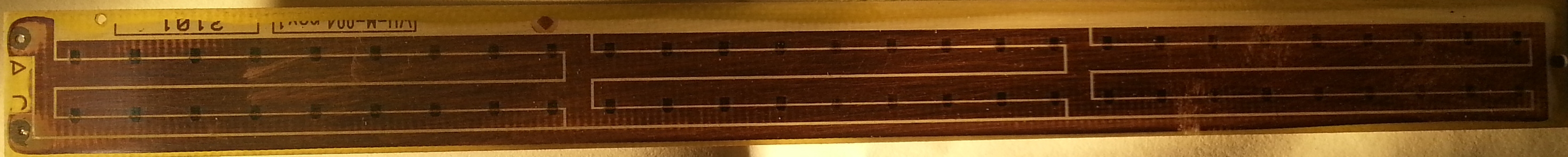 Wie bereits versprochen, habe ich die Platinen fotografiert. Bei der BE-Kopfplatine habe ich Anode und Kathode markiert, bei der Display-Platine sieht man am Rand die Buchstaben A (Anode) und C (Kathode) und kann so die Leiterbahnen verfolgen. Die Positionen der LEDs sieht man auf den Leiterbahnen.