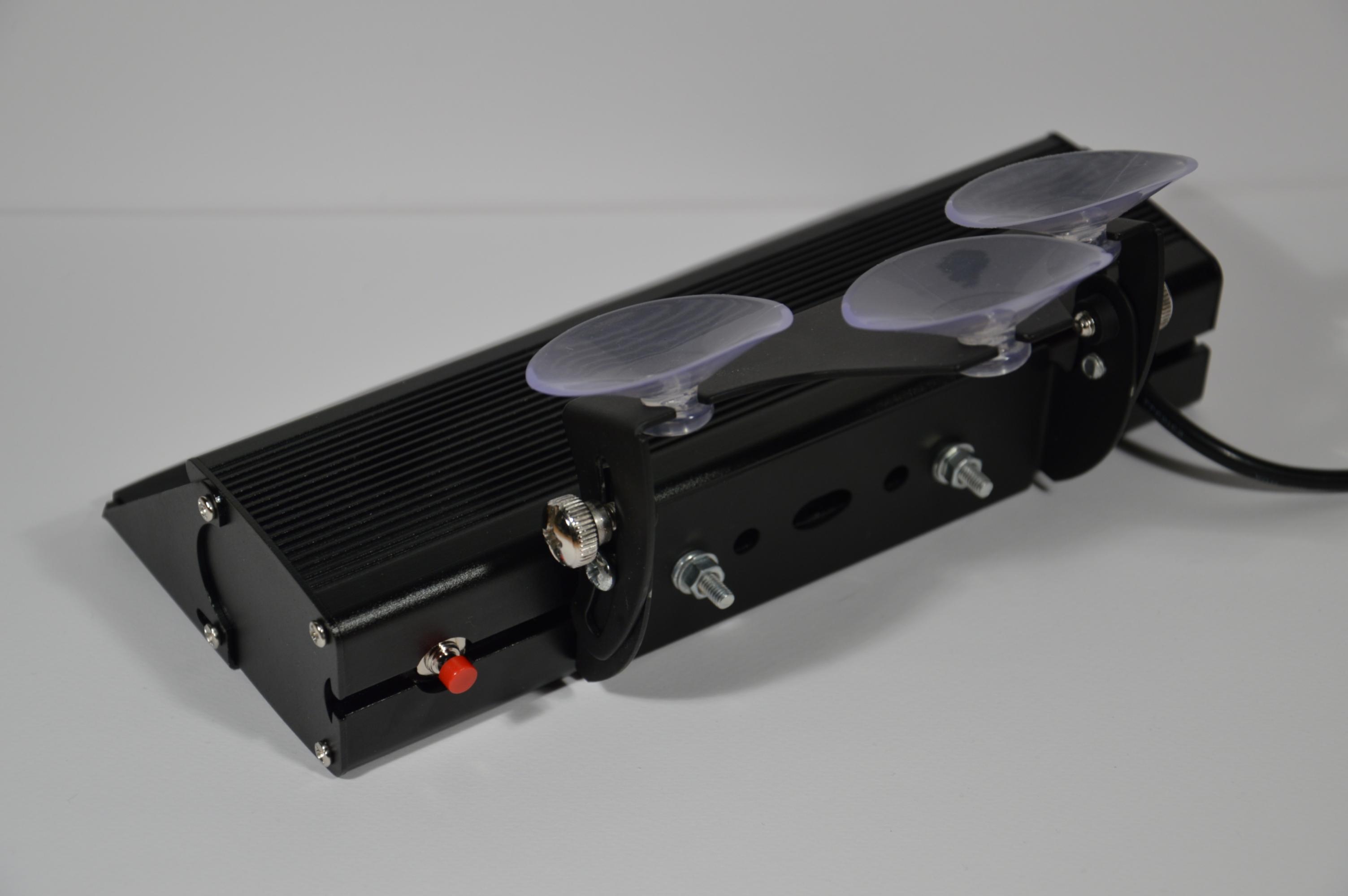 Spannung: 12 V Stromaufnahme: 0,9 A Maße (LxHxB): 21 x 11 x 16 cm Wie der Name schon vermuten lässt, handelt es sich hierbei um einen Scheibenblitzer auch chinesischer Produktion. Normalerweise bin ich eher kein Fan von Artikeln aus Fernost, doch dieses Dashlight zeigt, dass die Chinesen auch fähig sind durchaus gute Sachen auf den Markt zu bringen. Das Gehäuse sowie die Saugnapfhalterung und der Blendschutz bestehen aus schwarz lackiertem Aluminium, welches den Blitzer sehr stabil macht. Der Blendschutz ist an der Unterseite mit einem Kantenschutz versehen, um Kratzer zu vermeiden. Im Inneren befinden sich 6 Stück 3W LEDs. Jeweils drei davon wurden inklusive Linse auf einem rechteckigen Stück Aluminium befestigt, welches in das Gehäuse eingeschoben wurde. Davor sitzt eine Plexiglasscheibe. Aufgrund des "modularen" Aufbaus ist der Blitzer auch in einer 3er oder 12er Variante erhältlich. Die Lichtleistung ist, für ein Chinaprodukt, mehr als zufriedenstellend. Er macht zwar nicht so viel Licht wie z.B. Hänsch Nanos, brauch sich vor ihnen allerdings auch nicht verstecken. Es stehen insgesamt 16 Blitzmuster zur Verfügung, neben dem gewohnten Kirmes-Geblinke gibt es aber auch ein paar sinnvolle Muster, wie zum Beispiel Doppel- oder Quadroblitz. Man kann bei diesem Dashlight auch einiges adjustieren: So sind Blendschutz und die Saugnapfhalterung im Winkel einstellbar. Diese hält den Blitzer relativ gut auf seinem Platz. Den Strom bekommt er über ein 25cm langes, glattes Kabel. Am Ende sitzt ein Zigarettenanzünderstecker mit Ein/Aus-Schalter. Die Blitzmuster können über den roten Taster an der Rückseite des Gehäuses gewählt werden. Im Großen und Ganzen ein guter und günstiger Blitzer (natürlich ohne Zulassung), der aber leider über einen ziemlich engen Abstrahlwinkel verfügt (ist fürs Regal aber nicht so schlimm )