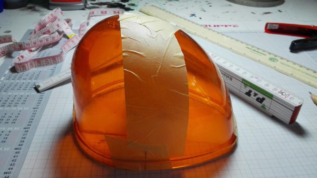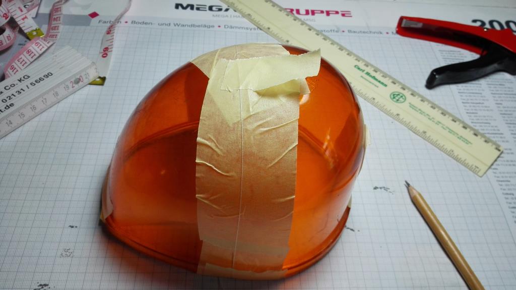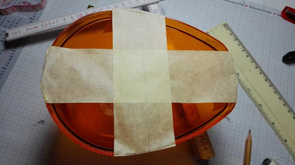 Dann die Mitte auf die Außenkanten übertragen und gleichzeitig den Bereich abkleben um Markierungen zu machen. Hilft später auch beim schneiden.